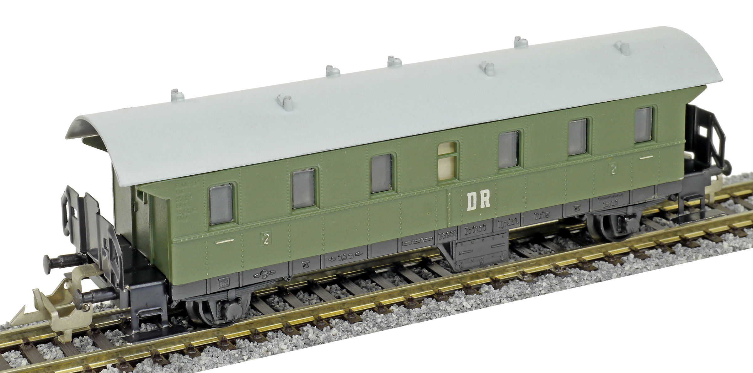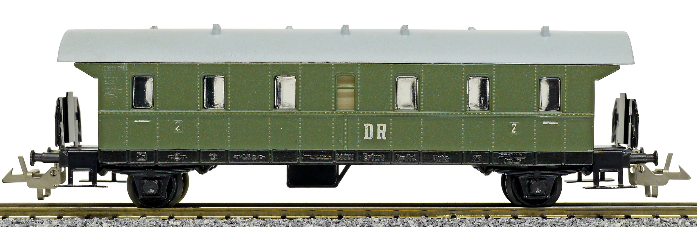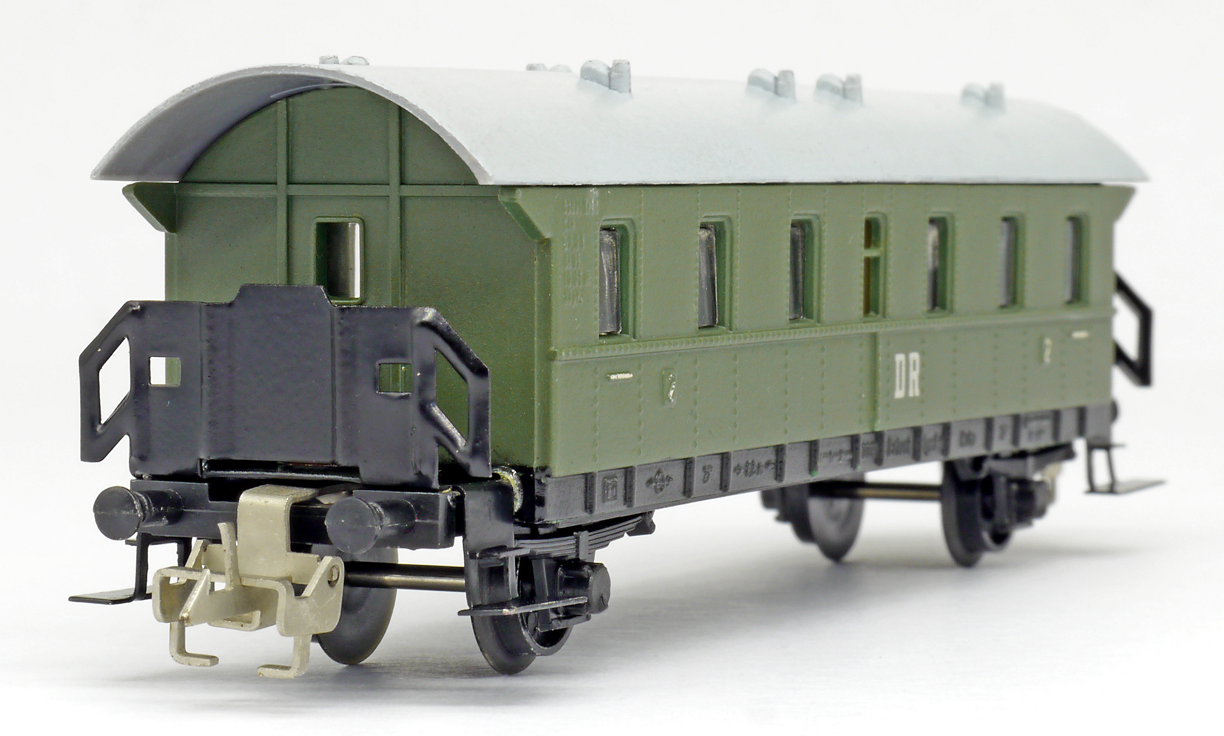 | osobní vůz zelený s šedou střechou 2. tř., bez brzd |