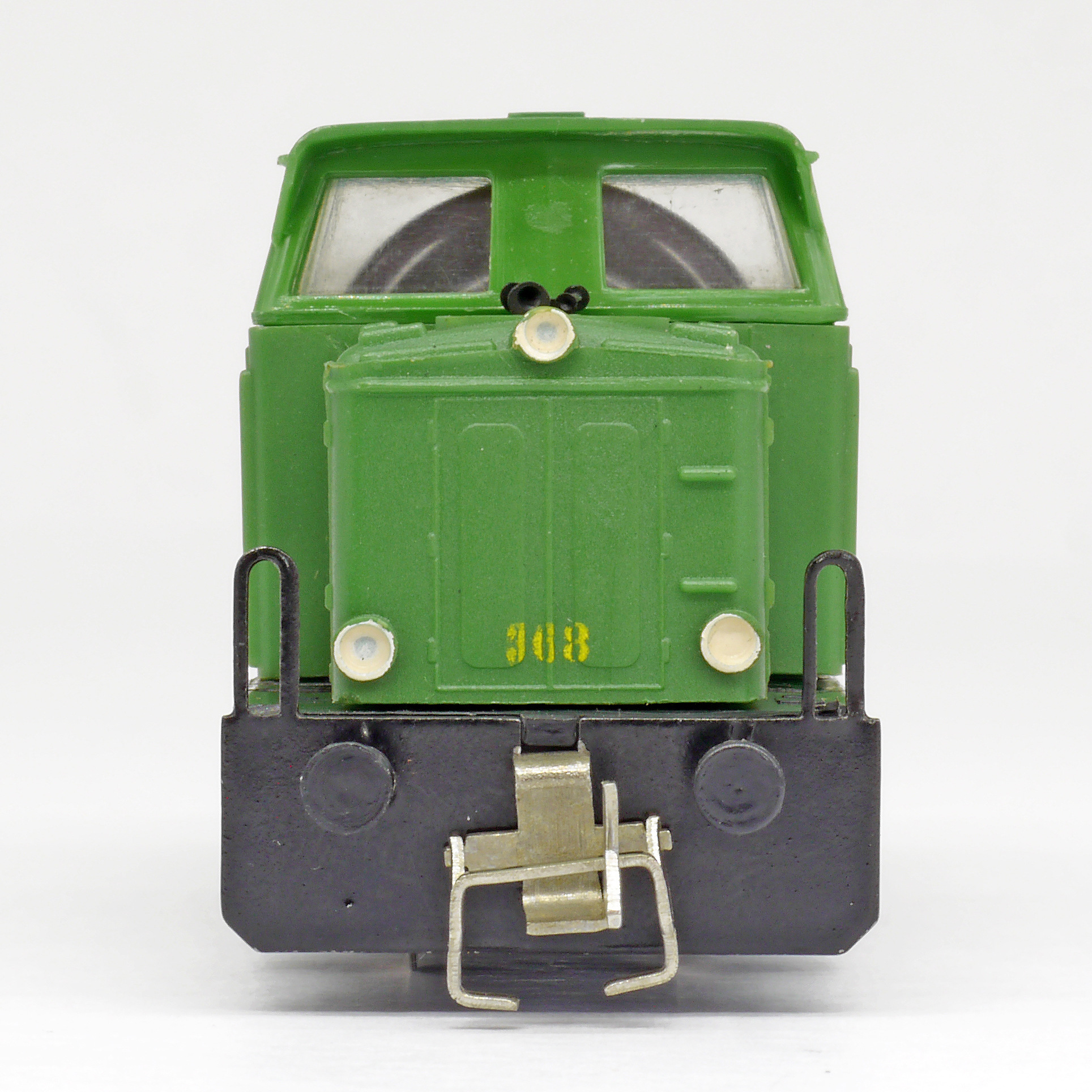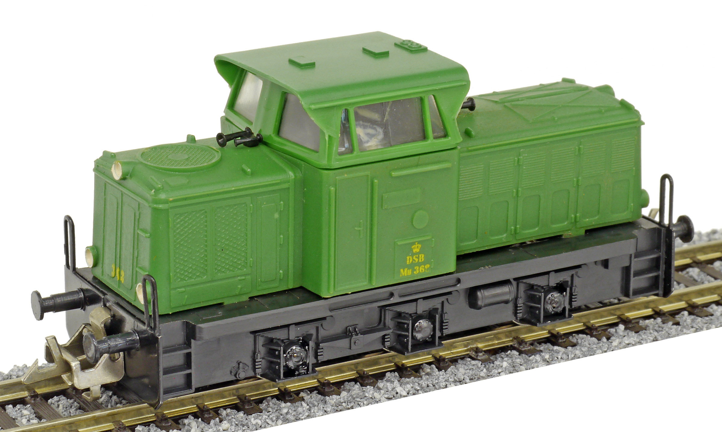 | dieselová lokomotiva zelená s černým rámem a pojezdem |