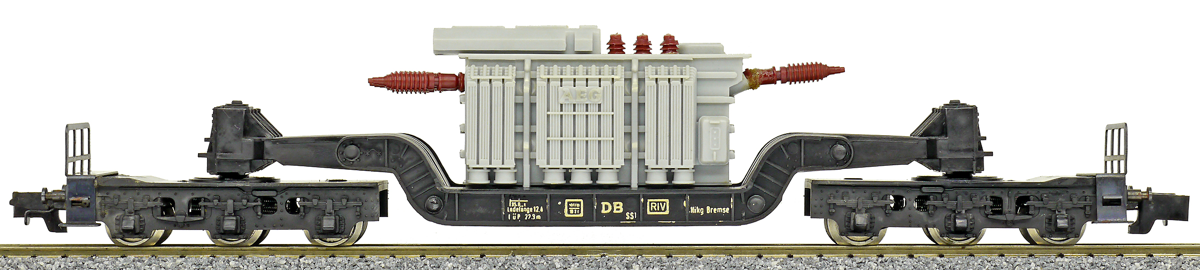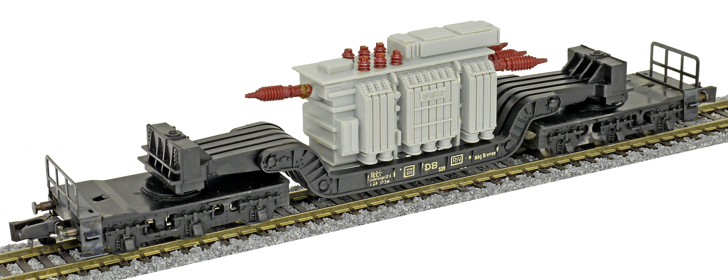 hlubinový nákladní vůz černý ložený transformátorem „AEG“