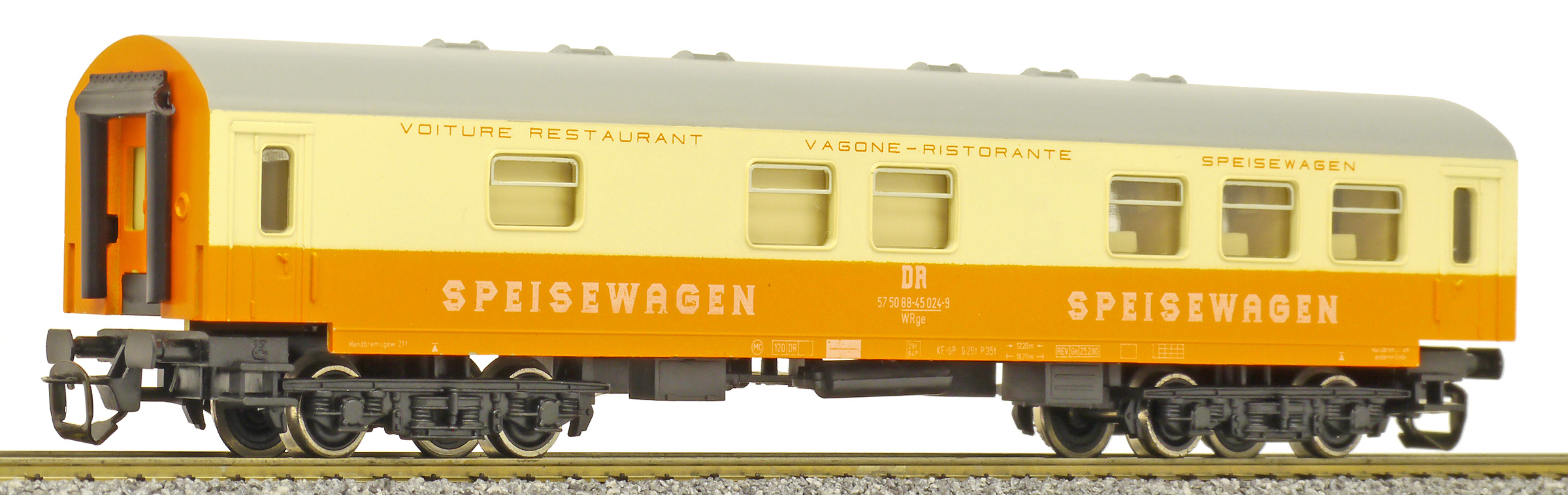 | jídelní vůz oranžový-slonová kost s šedou střechou „MITROPA“ |