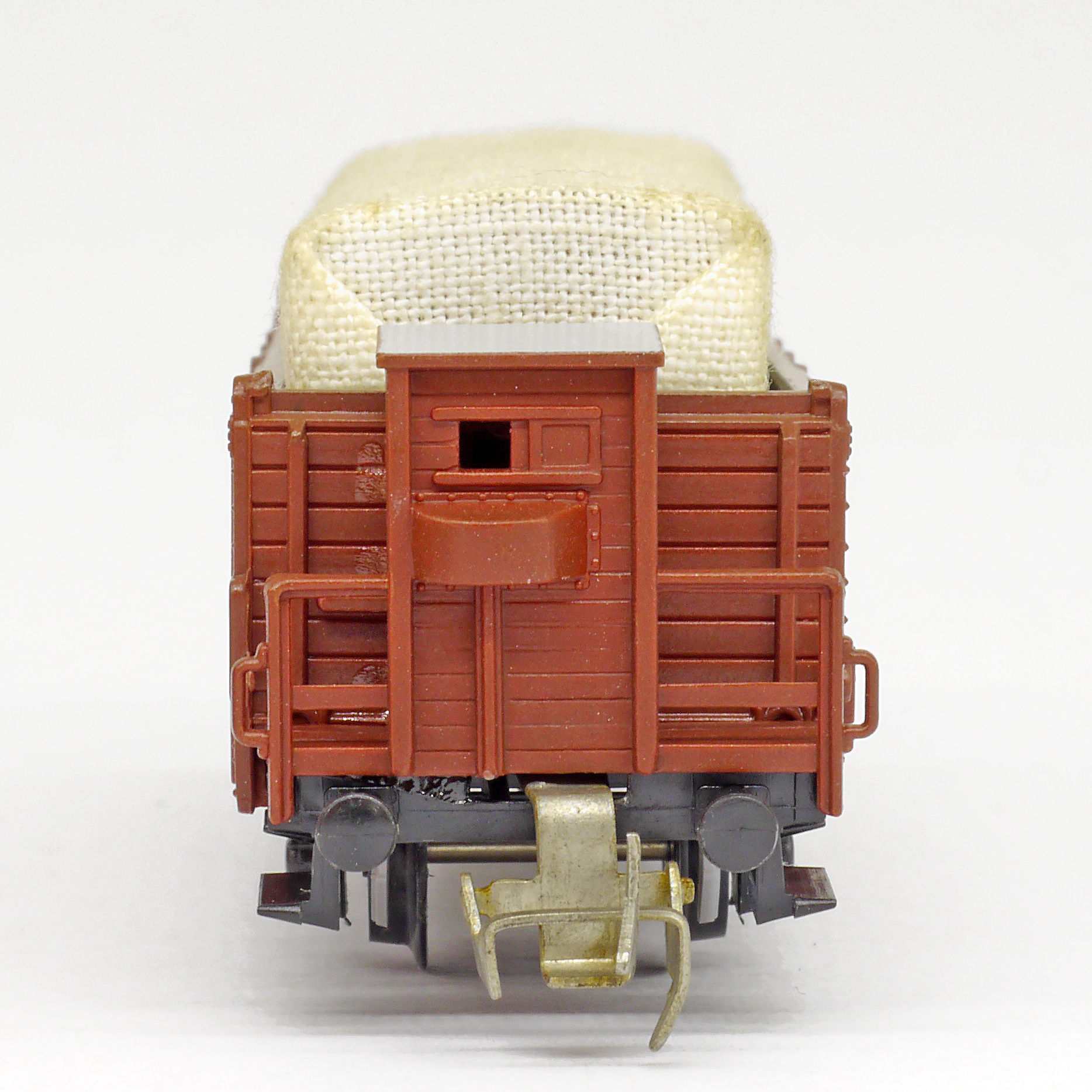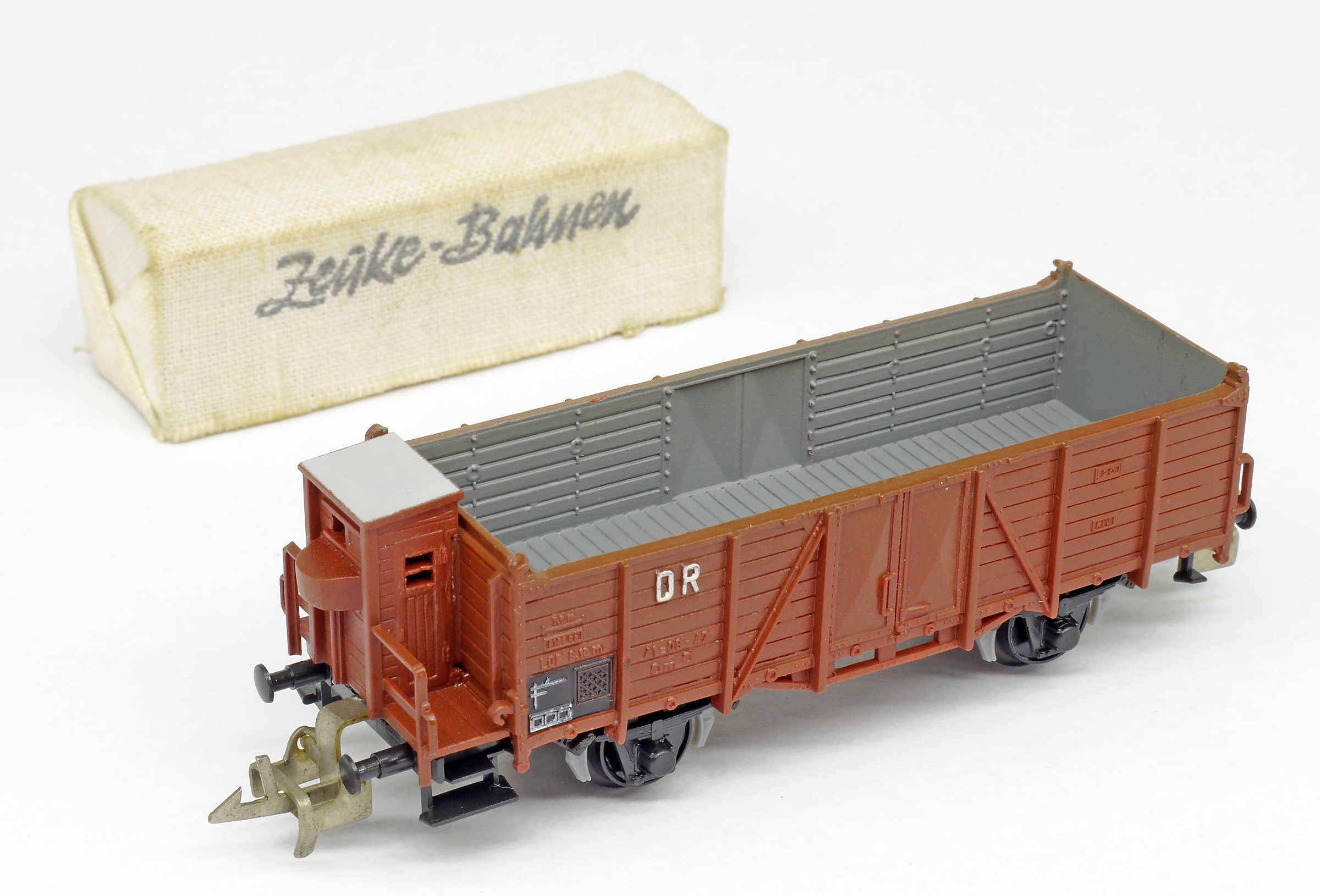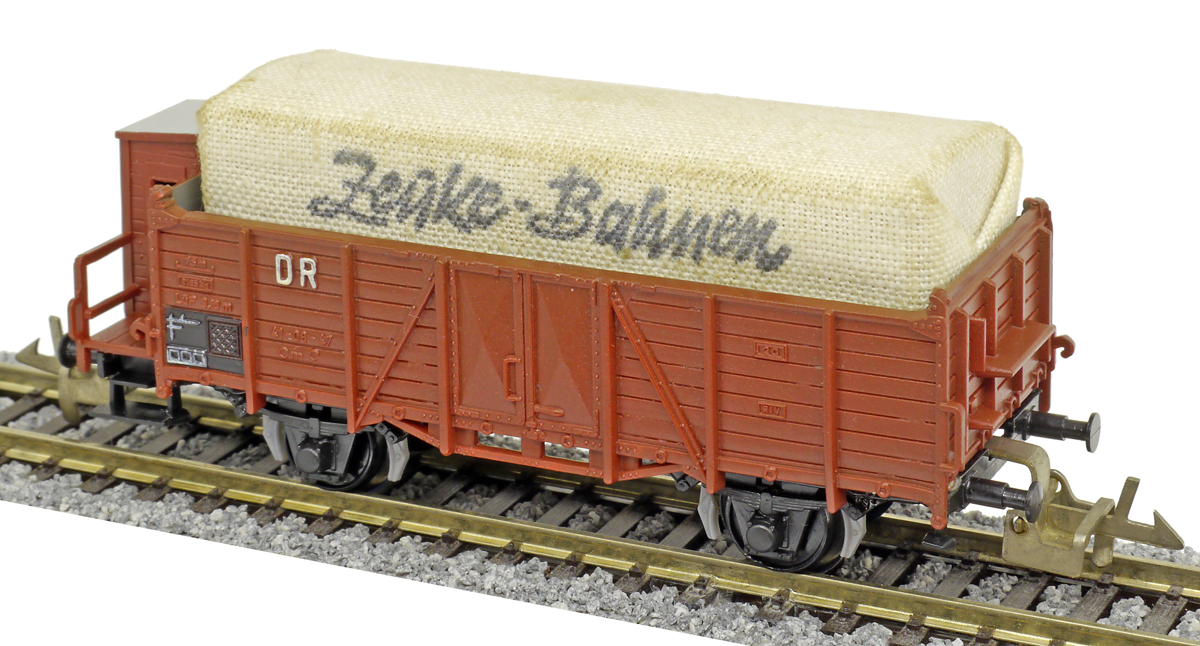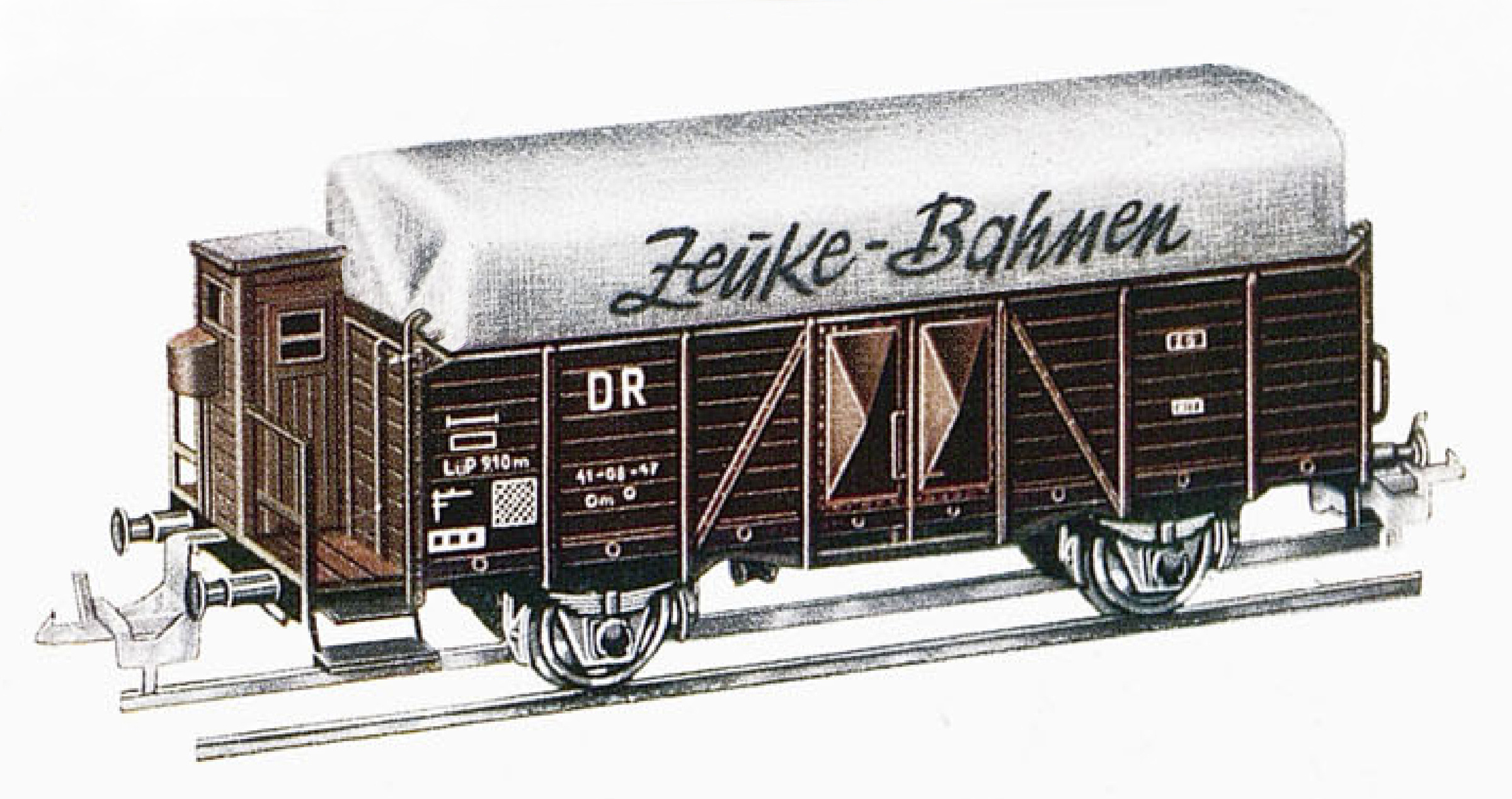 | otevřený nákladní vůz červenohnědý s brzdařskou budkou a s plachtou „Zeuke-Bahnen“ |