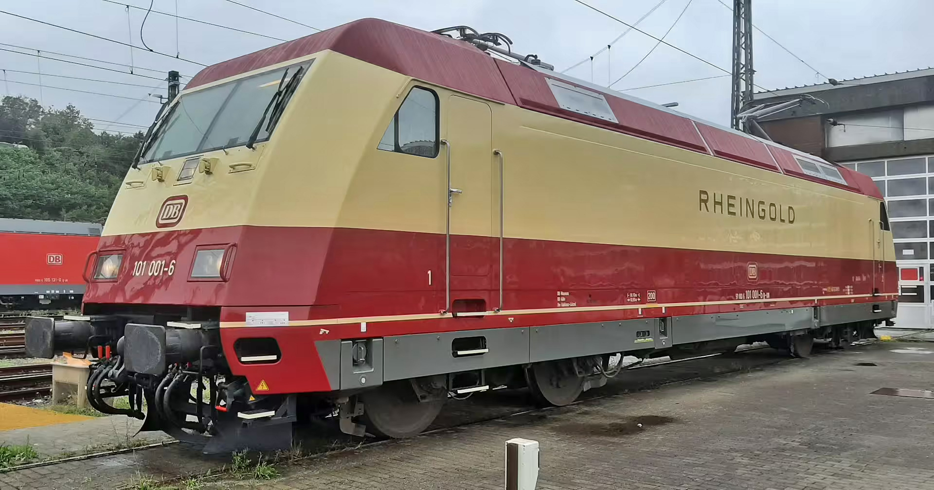| elektrická lokomotiva červená-slonová kost „Rheingold“ |
