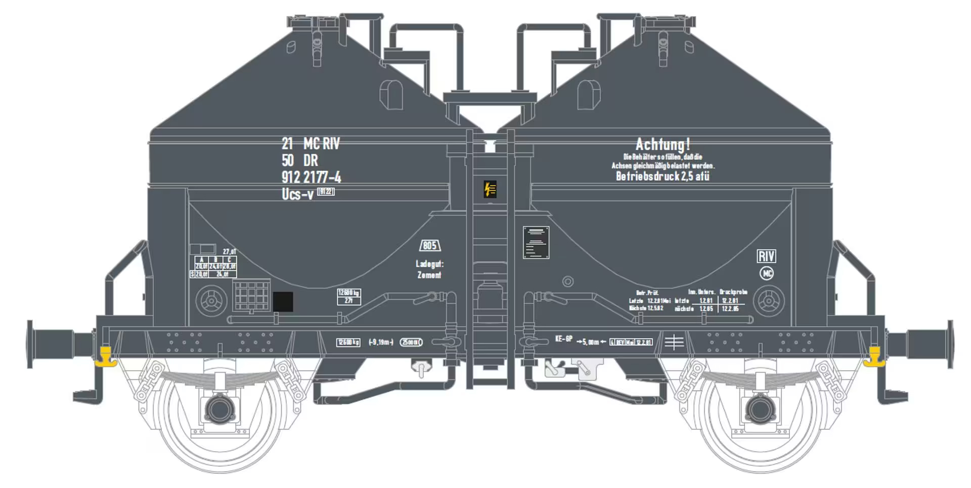 měřítko 1:120 - rozchod kolejí 12 mm kinematika krátkého spřáhla (KKK) podle normy NEM 358 220 mm - celková délka modelu přes nárazníky 3x2 - celkový počet náprav nebo rozložení náprav