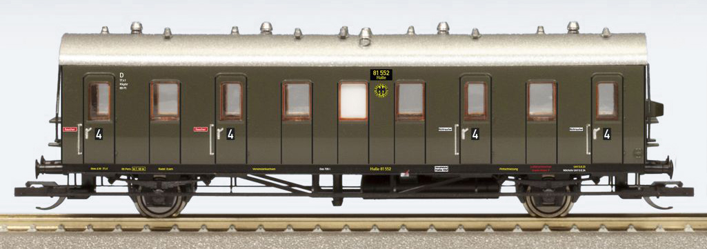 | oddílový osobní vůz zelený s stříbřitou střechou 4. tř. |