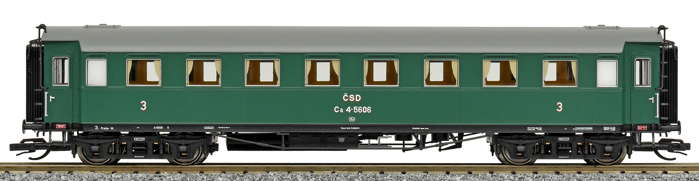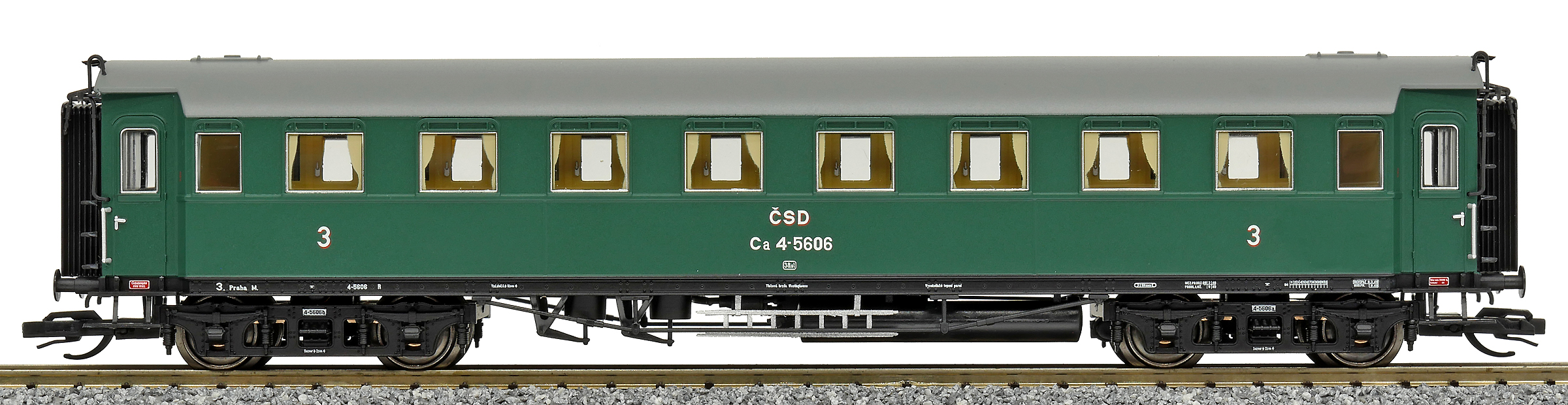 | oddílový osobní vůz zelený s šedou střechou 3. tř. |