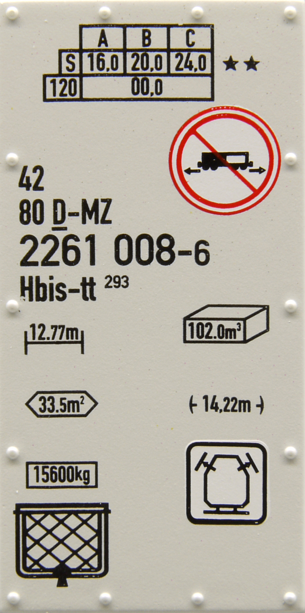 | • 42 80 2261 008-6 | → | H - krytý vůz zvláštní stavby |