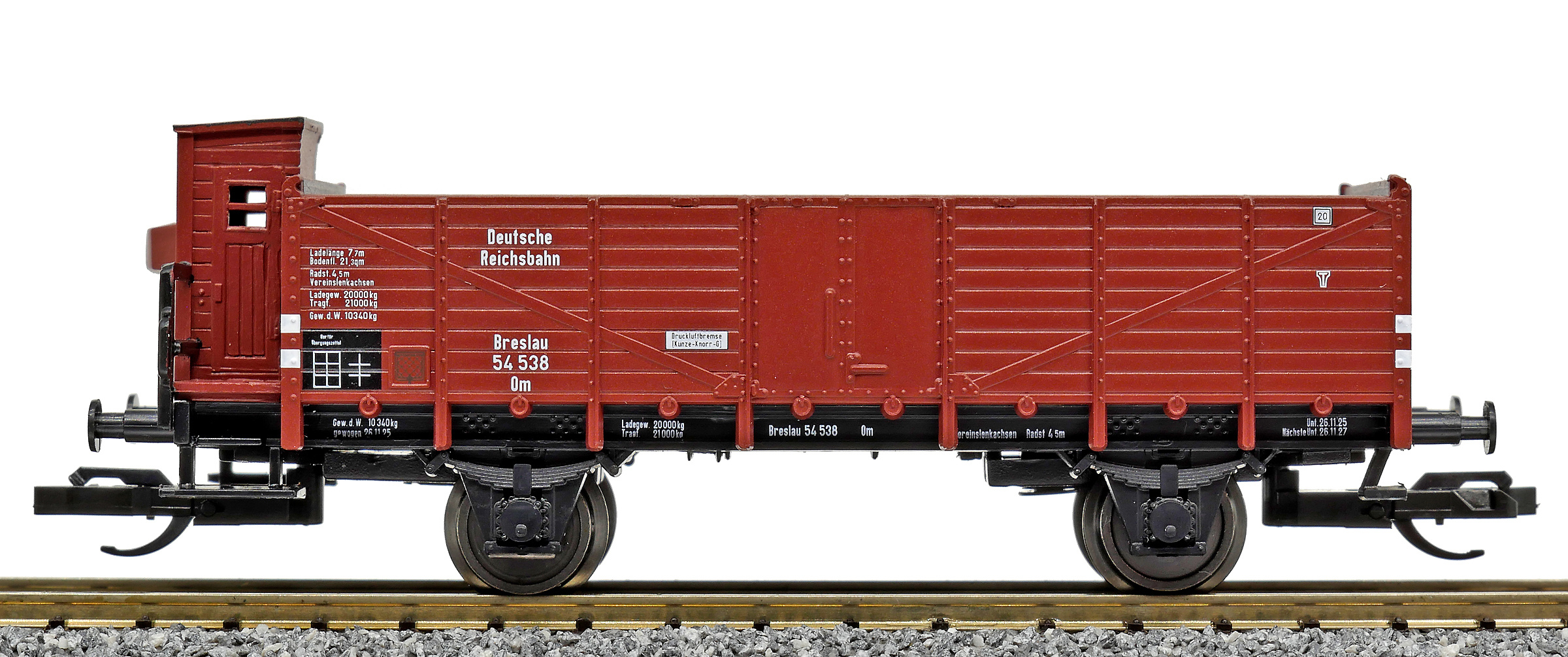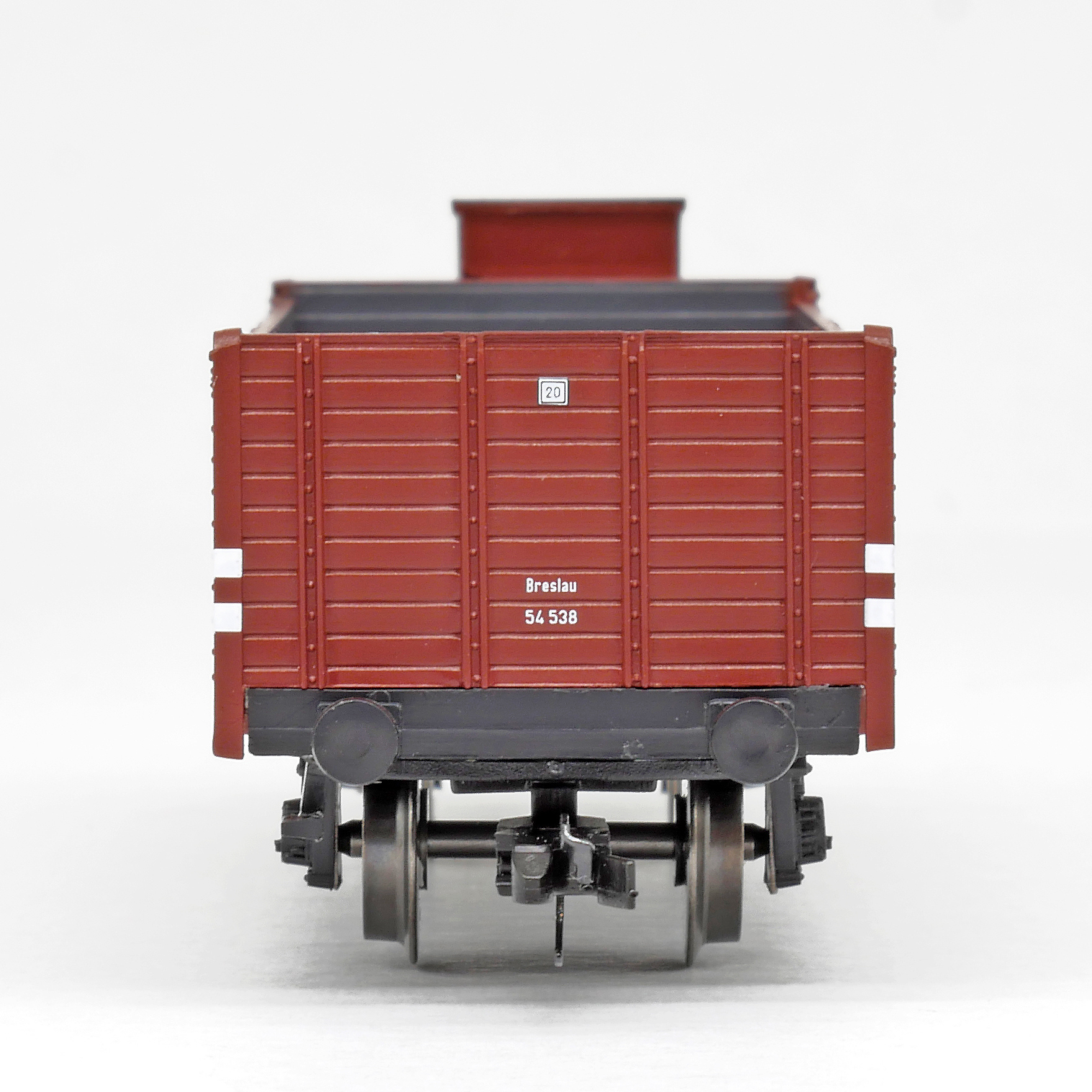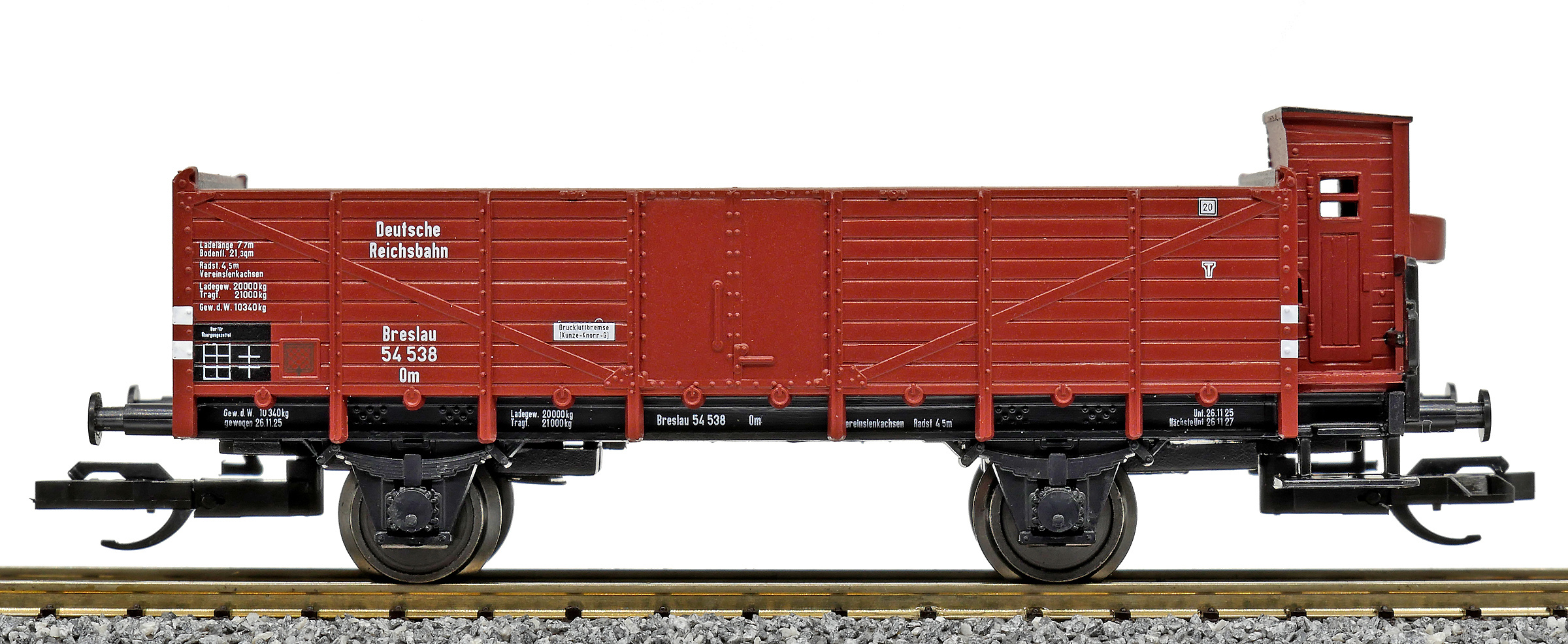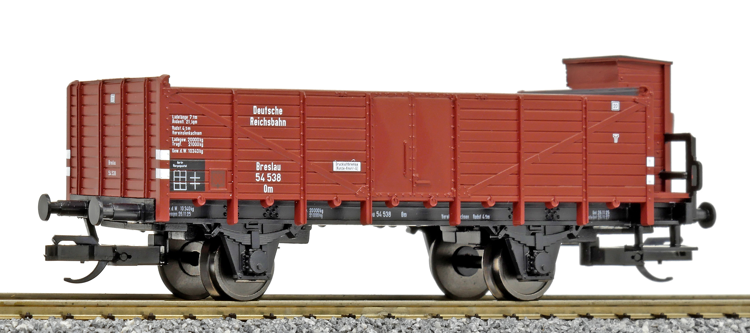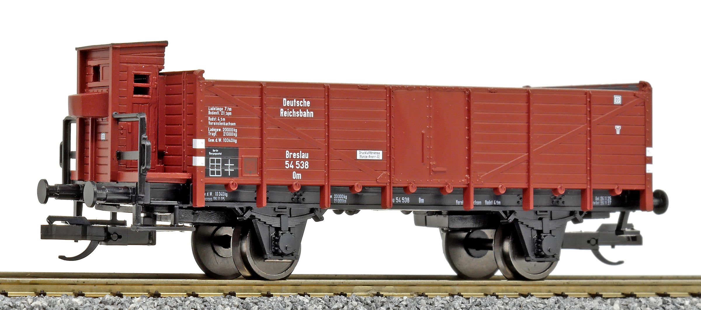 | otevřený nákladní vůz červenohnědý s brzdařskou budkou |