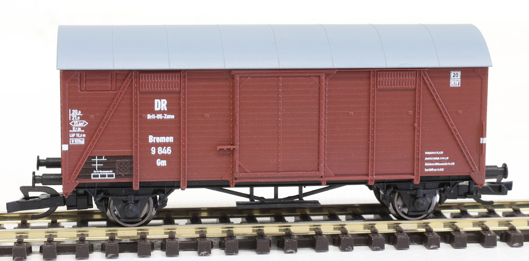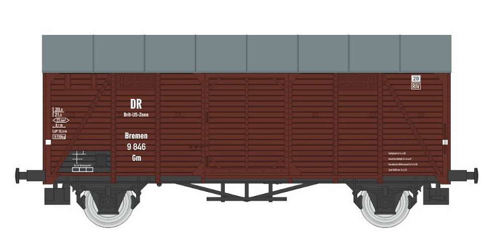| krytý nákladní vůz červenohnědý s šedou střechou „Brit-US-Zone“ |