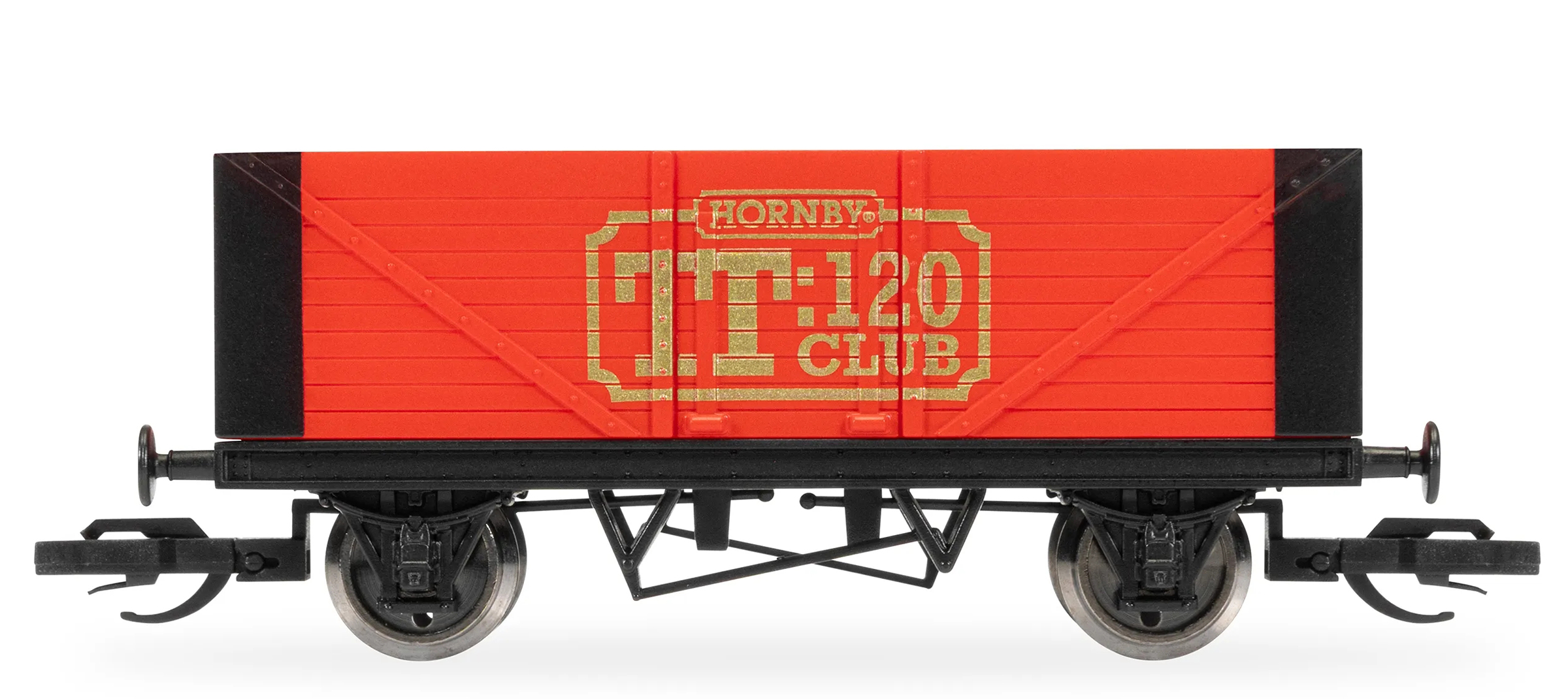 | otevřený nákladní vůz červený s potiskem „Club Wagon 2026“ |