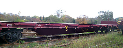 | nákladní plošinový vůz červený s odnímatelnými klanicemi |