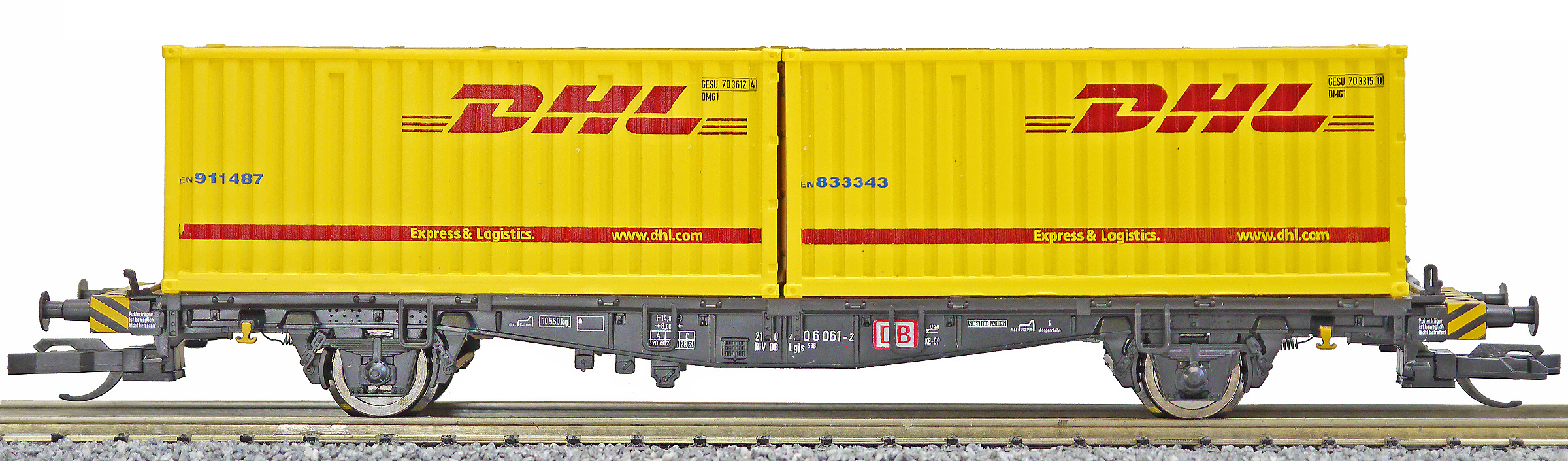 | černý Lgjs se dvěma žlutými kontejnery 20' „DHL“ |