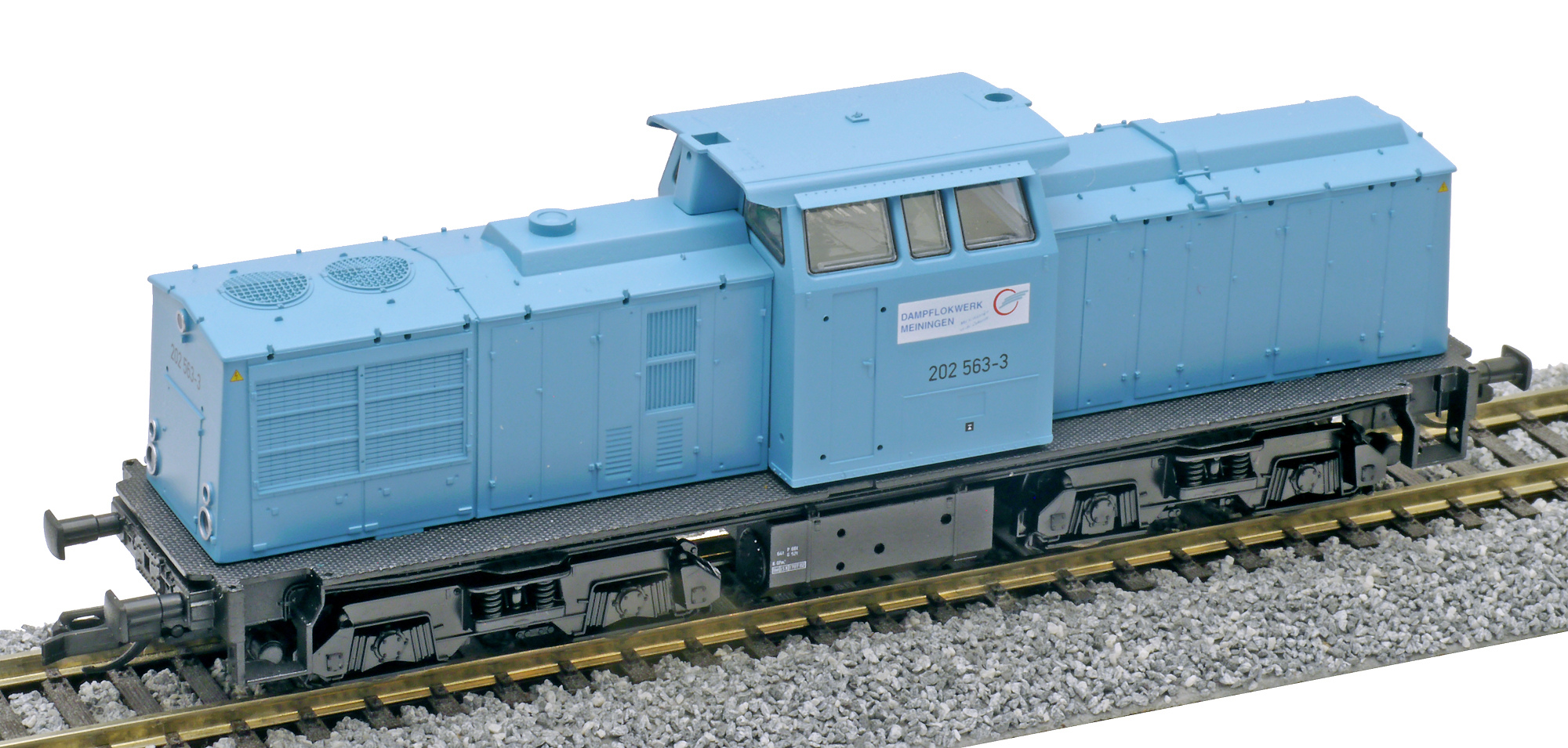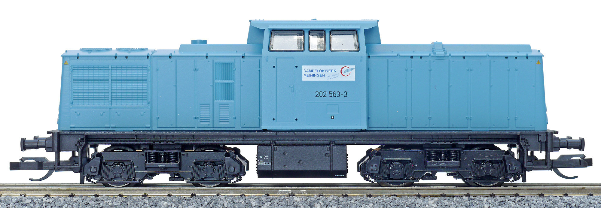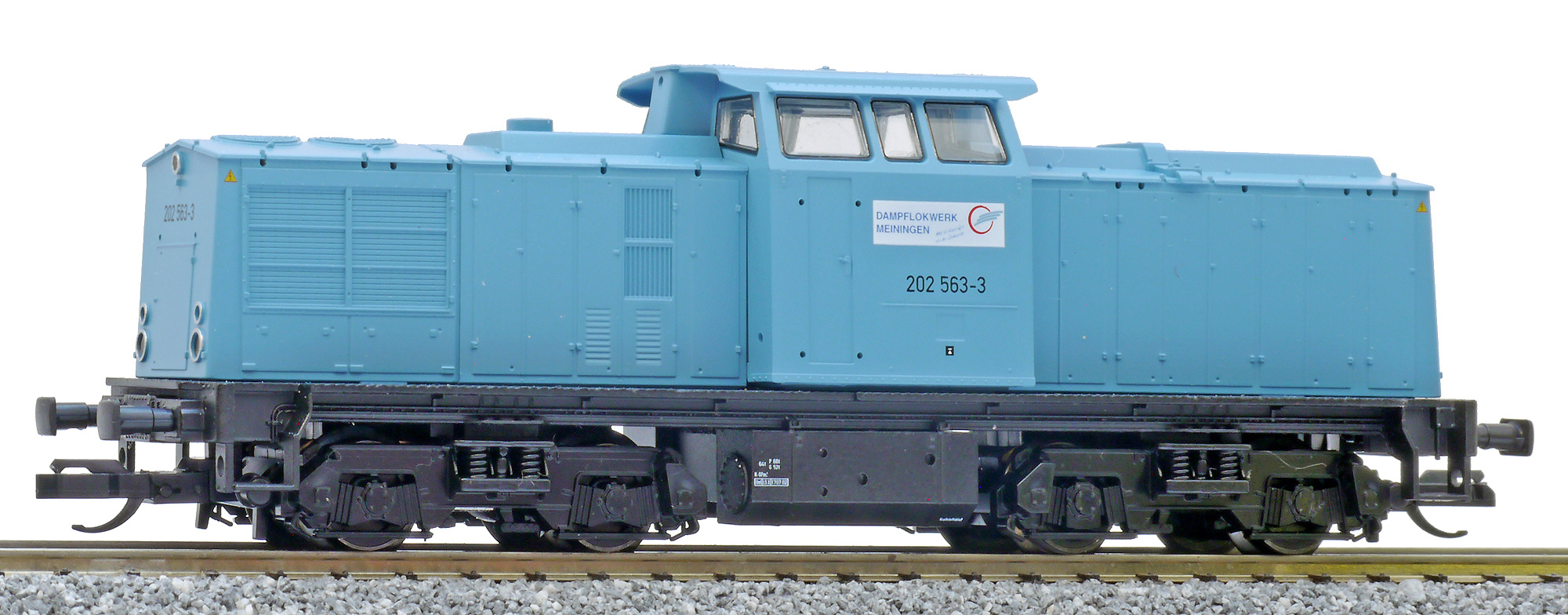 Popis   modrá s černým pojezdem "Dampflokwerk Meiningen" (DLW)