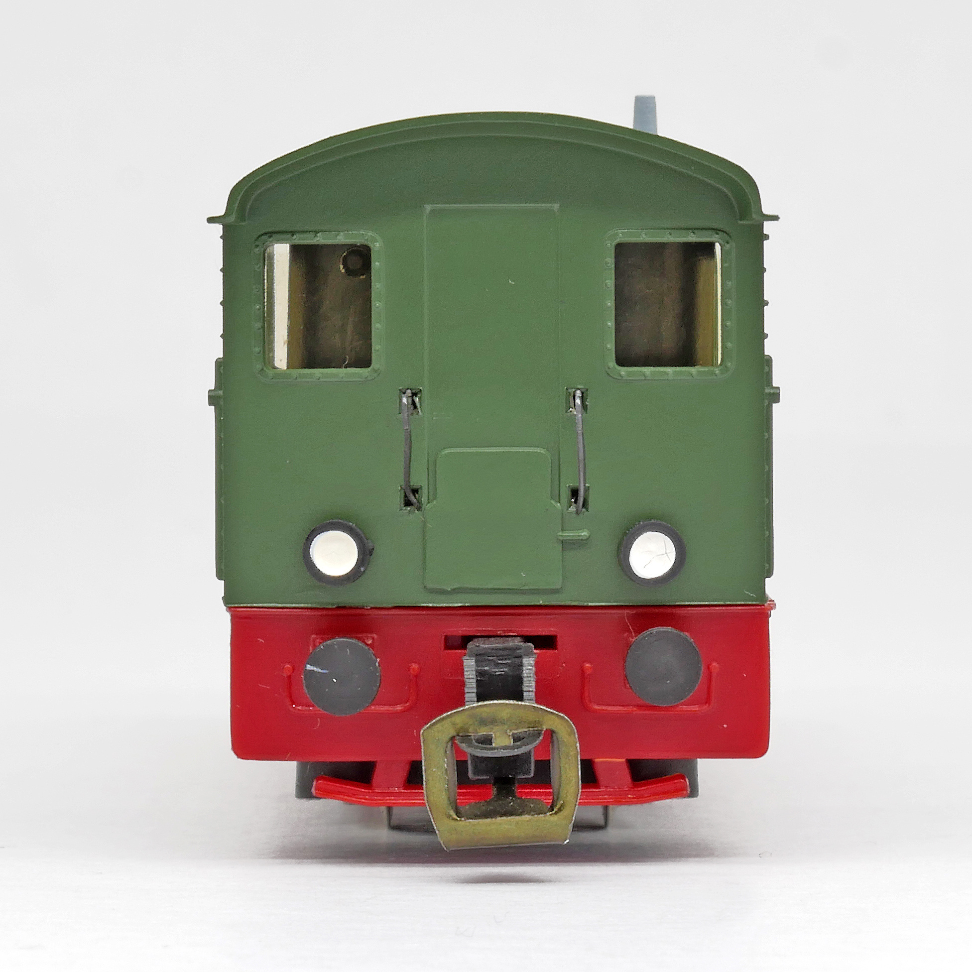 | dieselová lokomotiva zelená s červeným pojezdem |