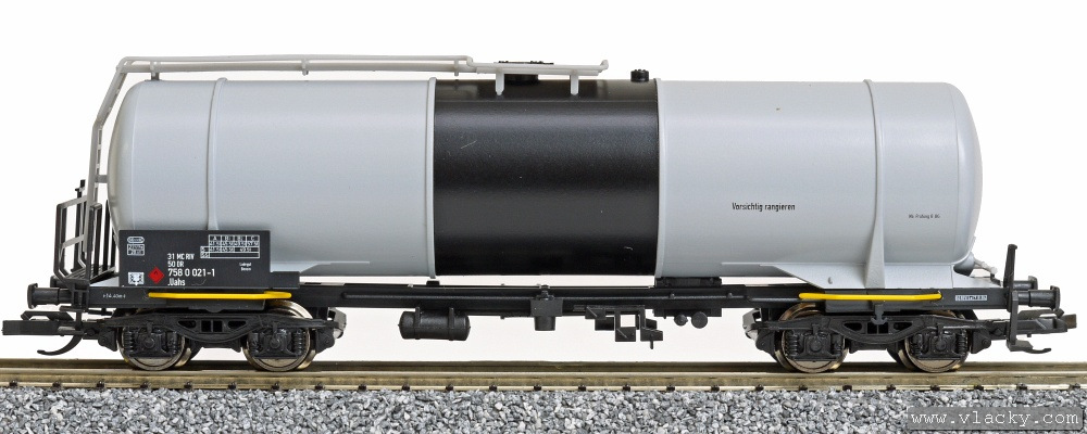 stříbrná cisterna na lehké oleje s černým příčným pásem