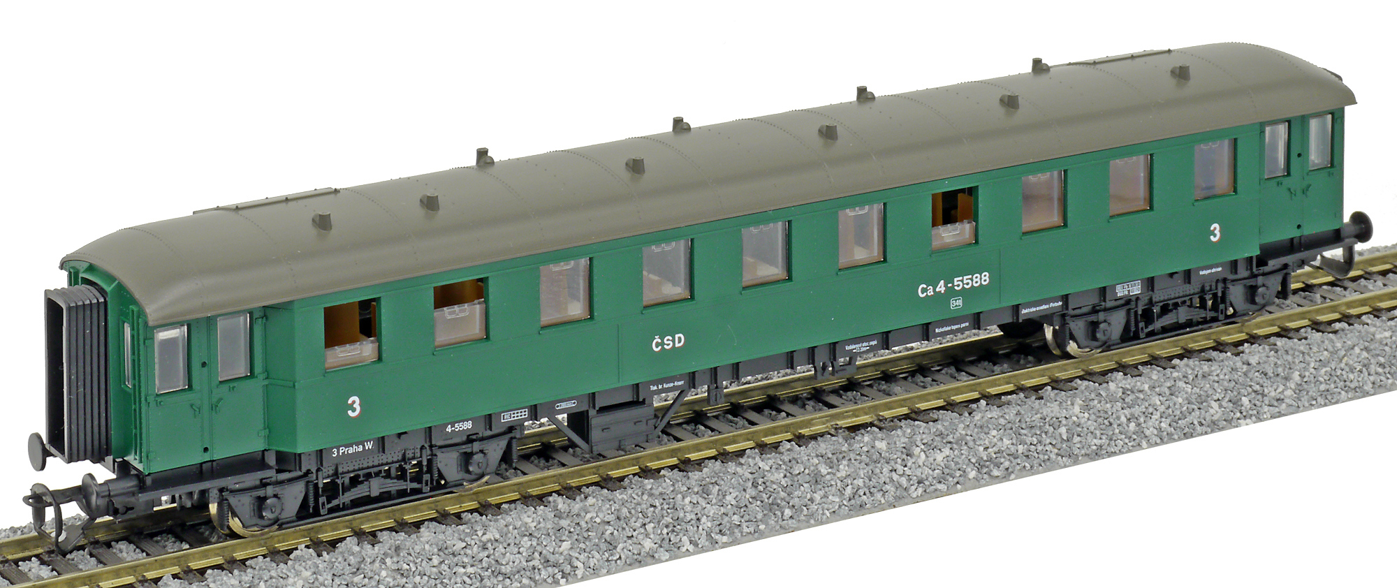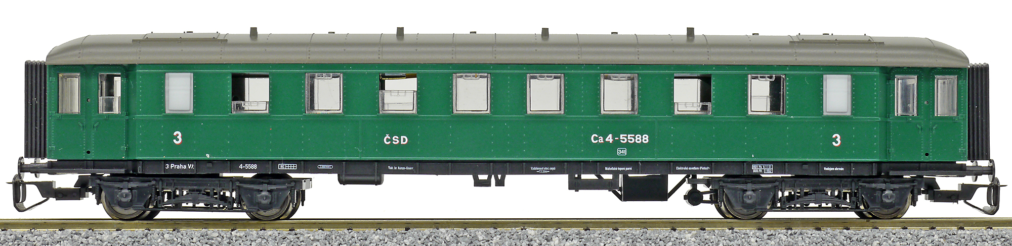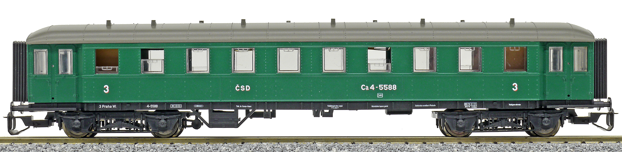 osobní vůz zelený s šedou střechou 3. tř.