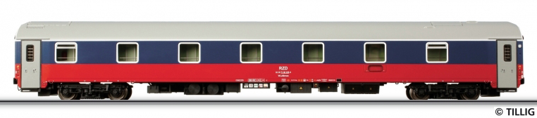lůžkový vůz modrý-bílý se světle šedou střechou