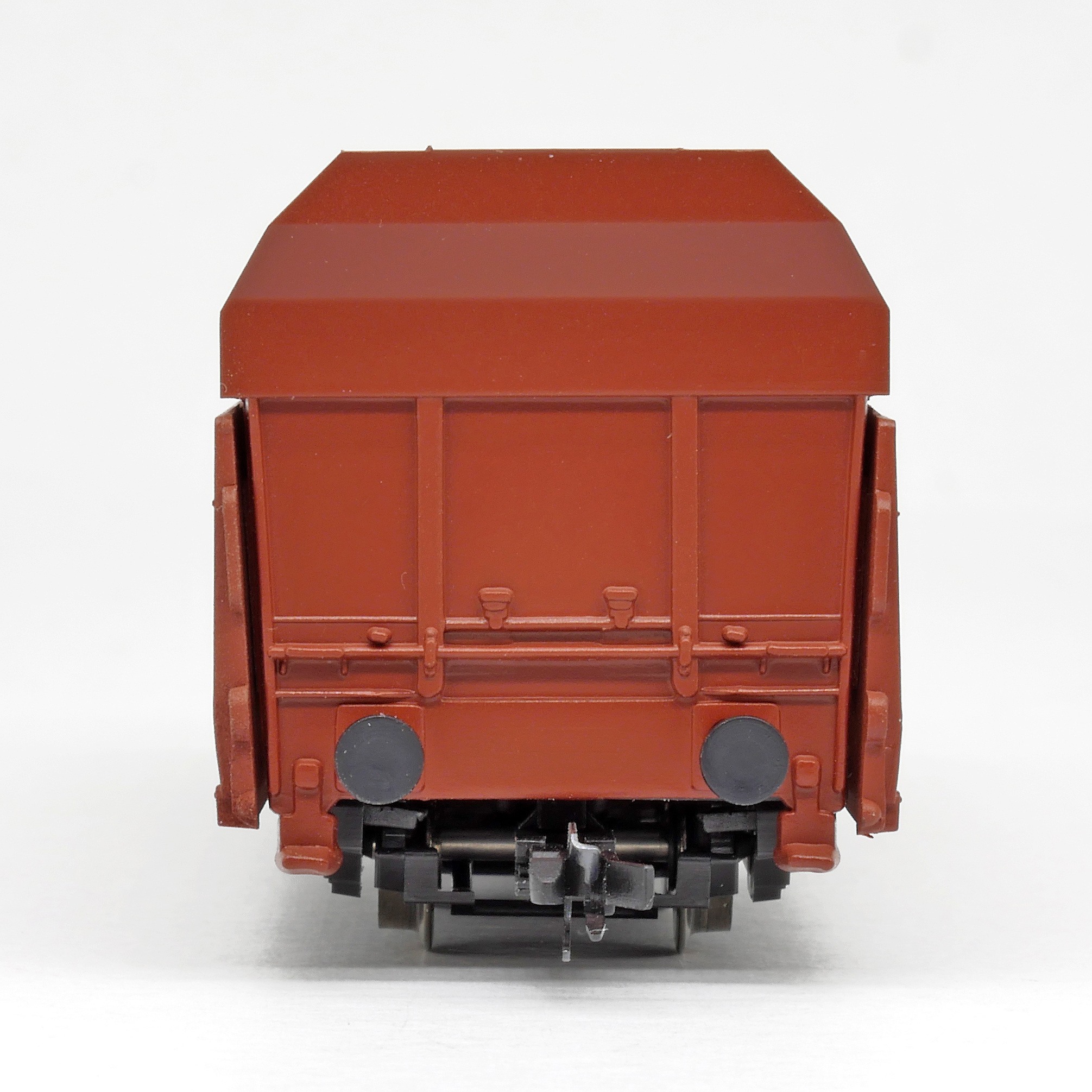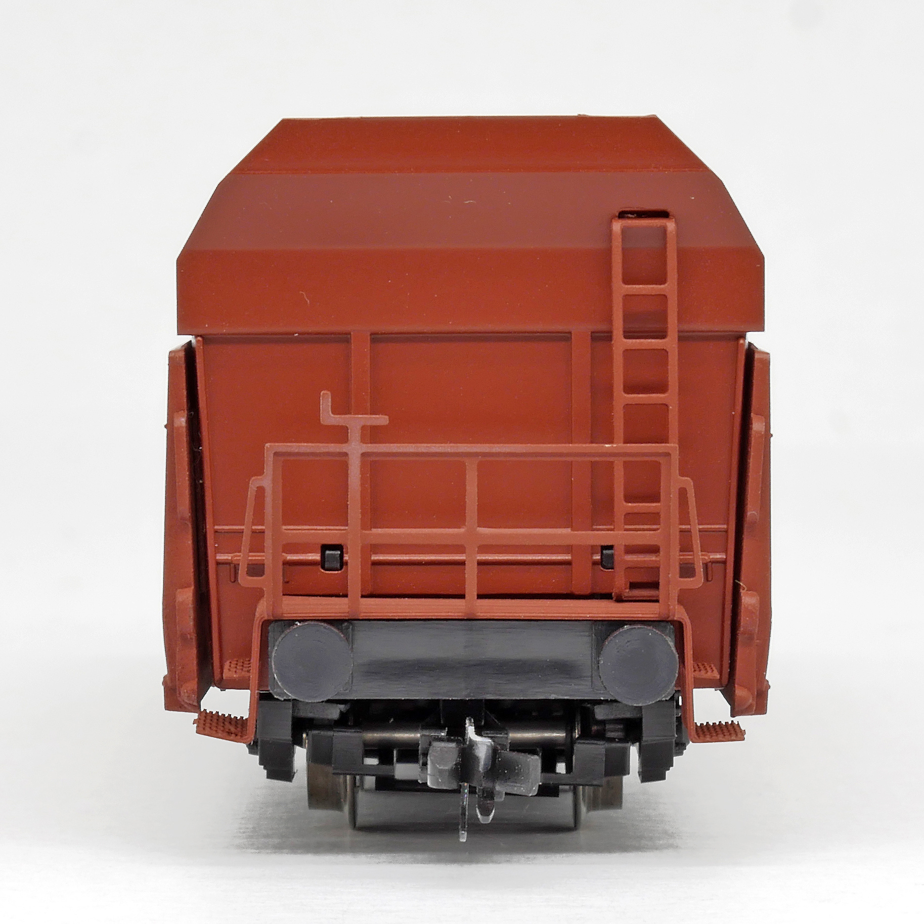 | nákladní samovýsypný vůz červenohnědý s opravnými fleky |