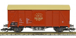 | krytý nákladní vůz červenohnědý s okrovou střechou „ZOO - Safari” |