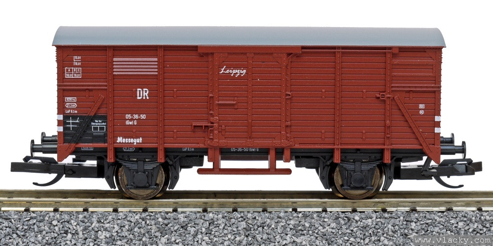 | krytý nákladní vůz červenohnědý s šedou střechou „Messegut“ |