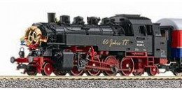 Popis   parní lokomotiva černá s červeným pojezdem „60 Jahre TT”
