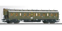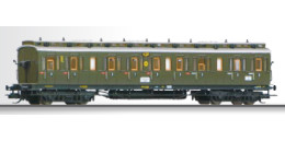 | oddílový osobní vůz zelený s šedou střechou a brzdařskou budkou 3. tř. |
