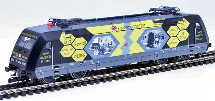 | elektrická lokomotiva s reklamním potiskem „Konzernsicherheit“ |