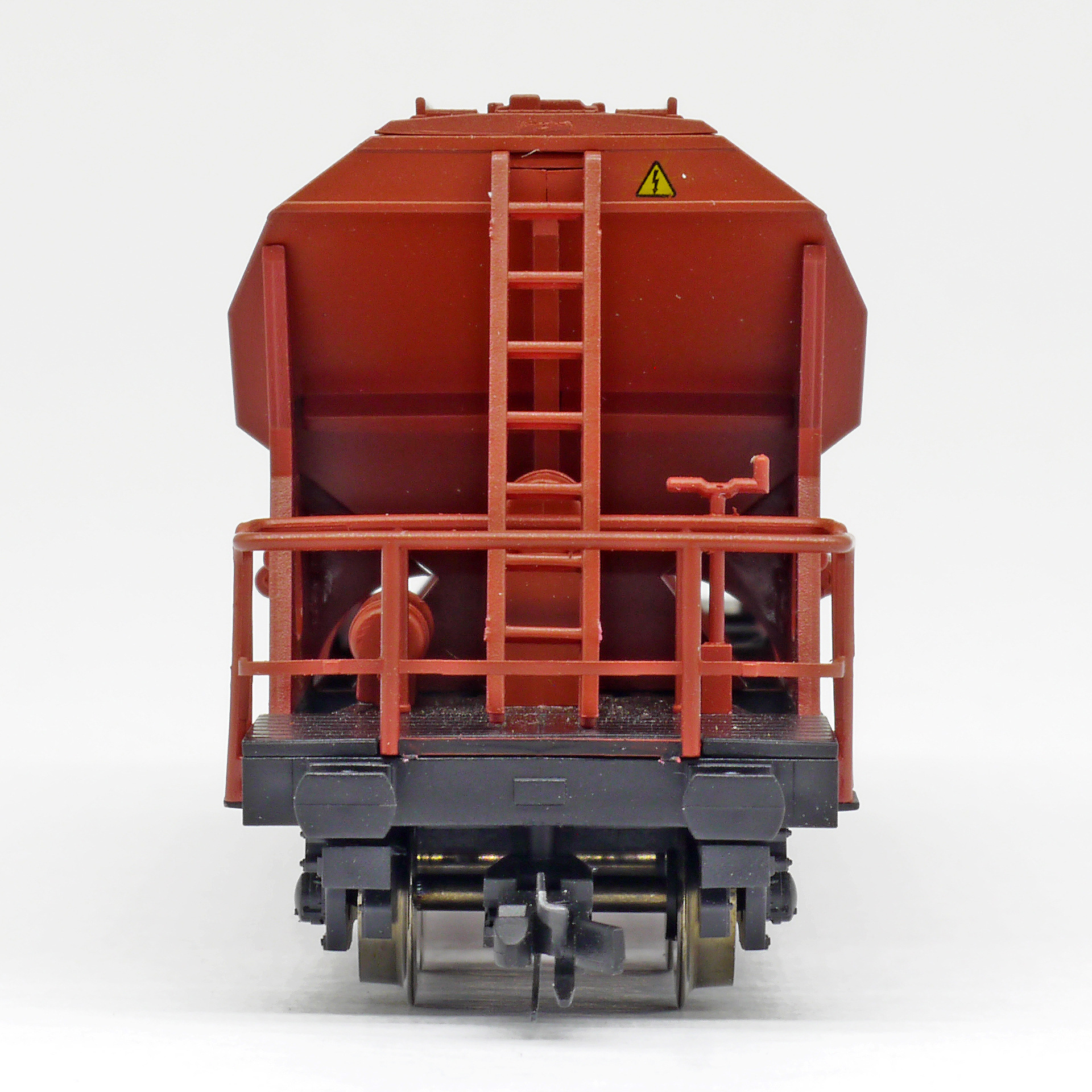 | nákladní samovýsypný vůz červenohnědý s černým rámem, s klapkami „NHKG Ostrava-Kunčice“ |