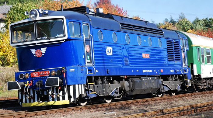 Popis   dieselová lokomotiva modrá, černá střecha a pojezd