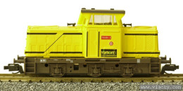 Popis   dieselová lokomotiva žlutá se dvěma černými proužky, hnědý rám a pojezd