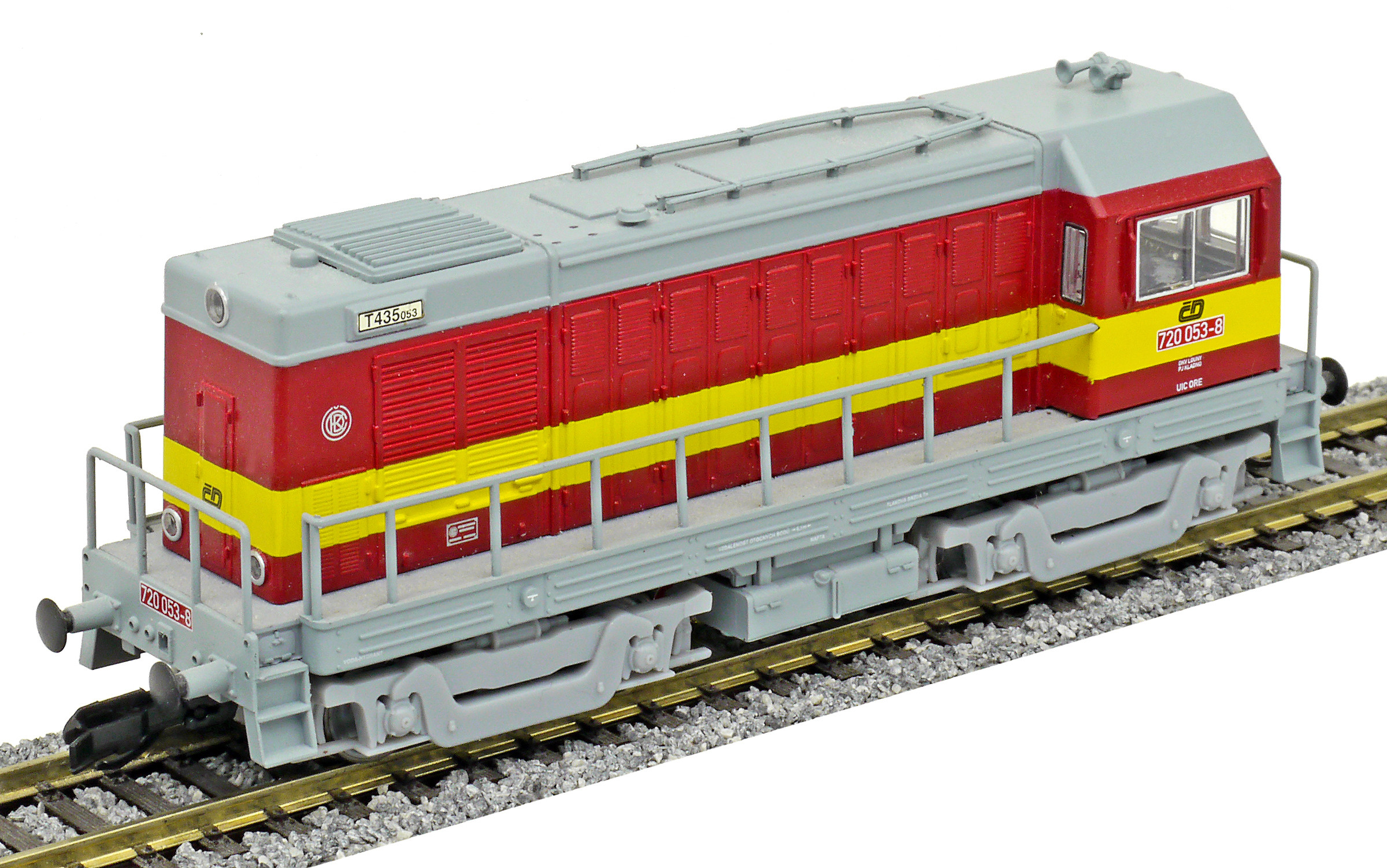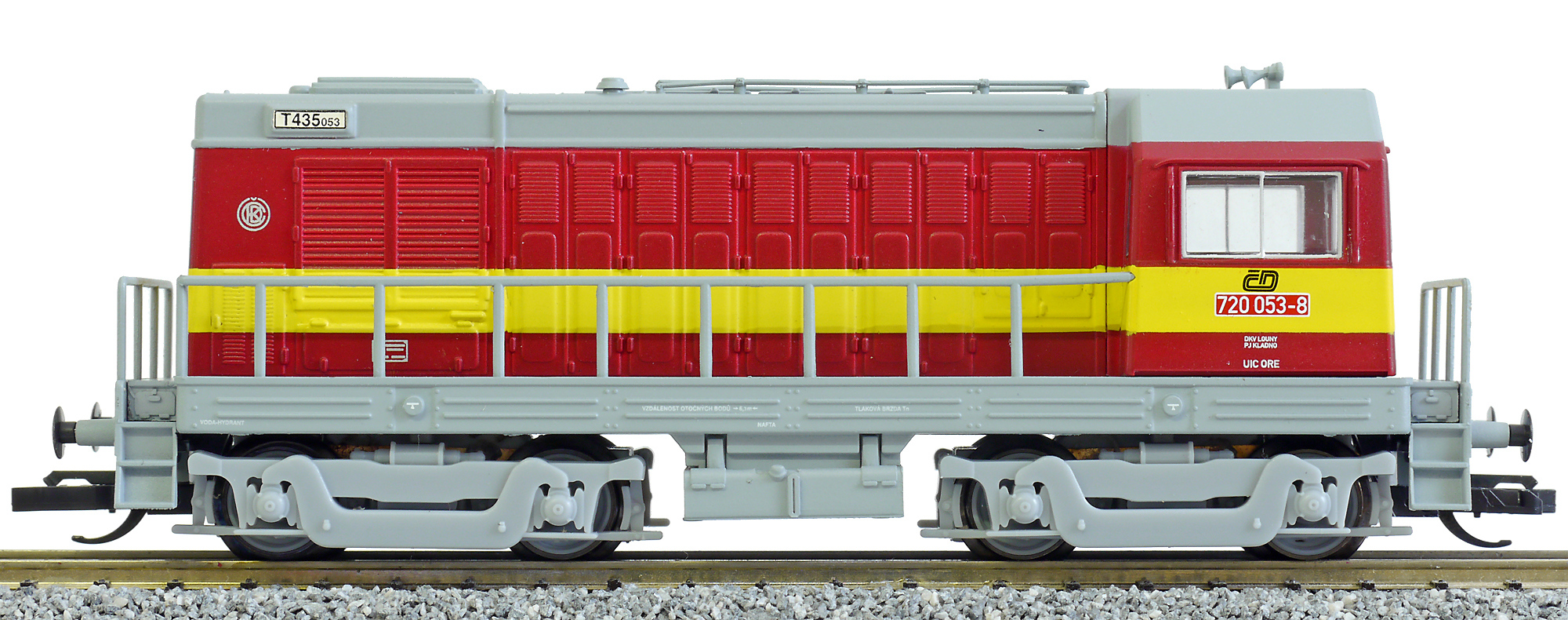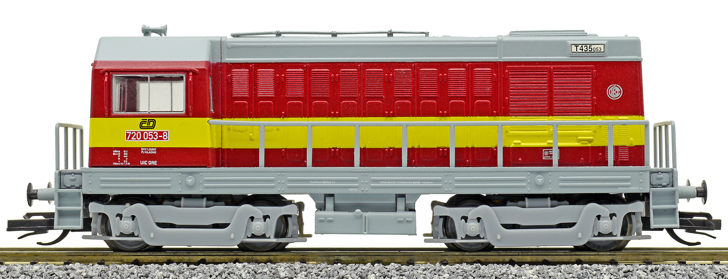 Popis   dieselová lokomotiva červená s výstražným žlutým pruhem