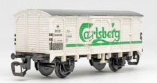krytý nákladní vůz bílý s šedou střechou „Carlsberg“