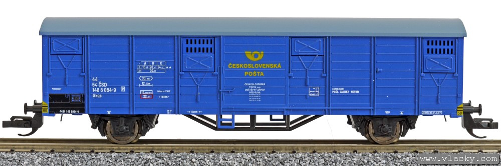 | krytý nákladní vůz modrý s šedou střechou „Československá pošta“ |