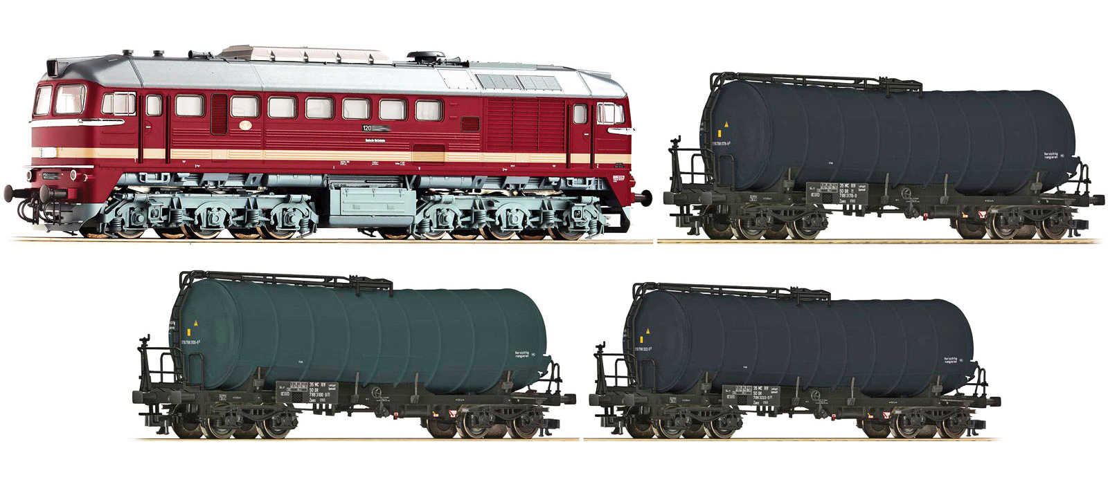 Popis   set dieselové lokomotivy BR 120 a tří cisternových vozů