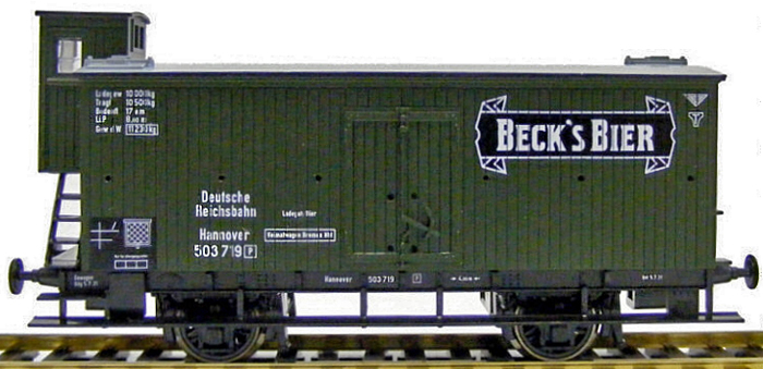 | zelený s šedou střechou a brzdařskou budkou "Becks Bier" |