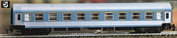 | rychlíkový vůz modrý s šedým pásem a s šedou střechou 1. tř. |