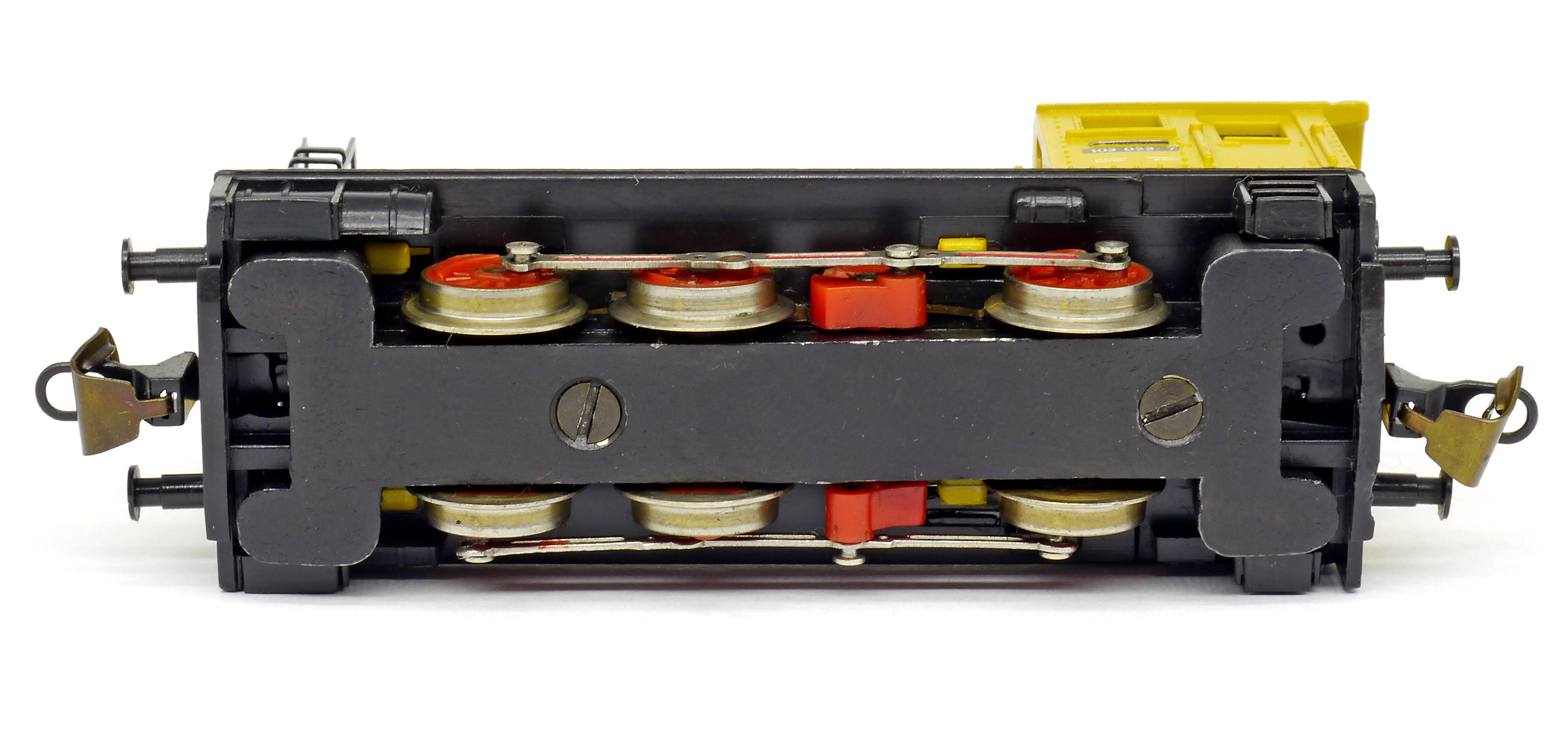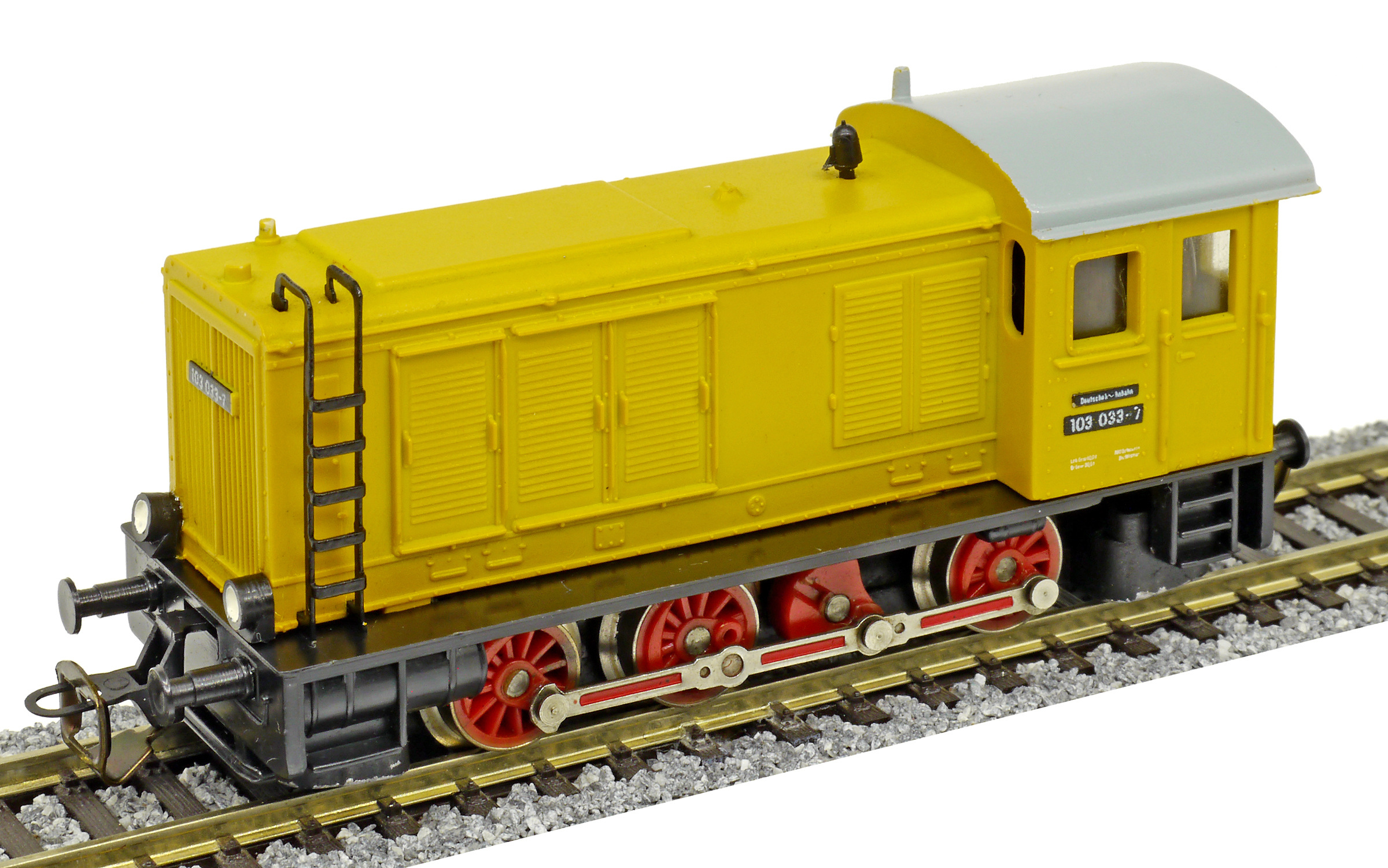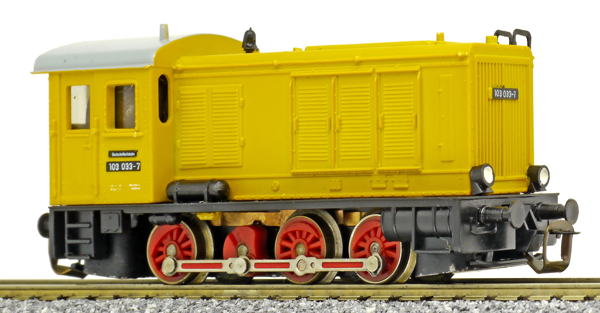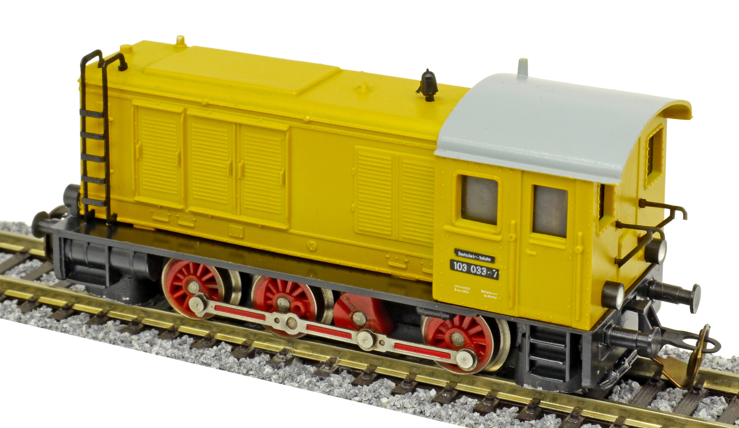Popis   dieselová lokomotiva žlutá s černým rámem a červenými koly