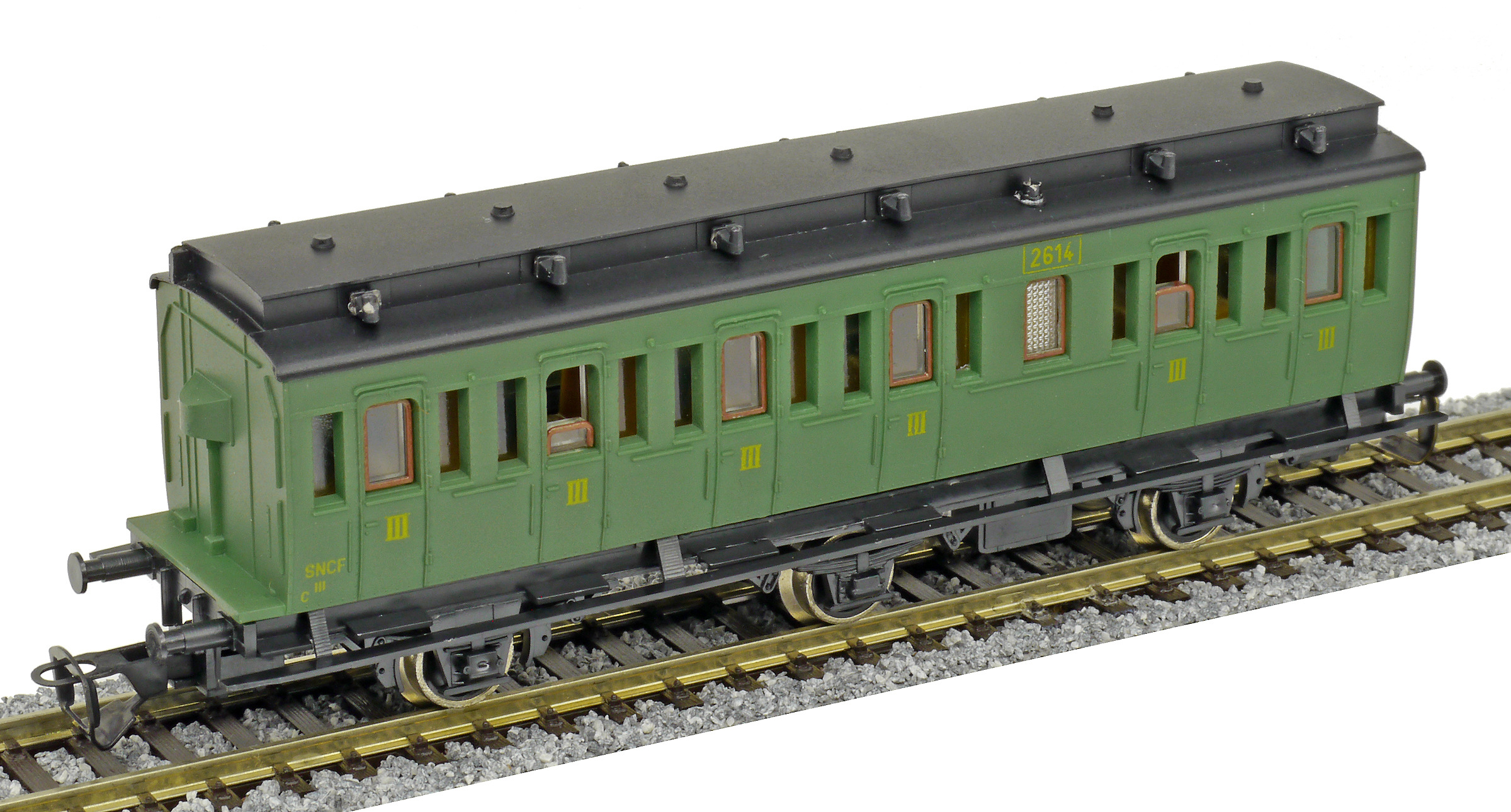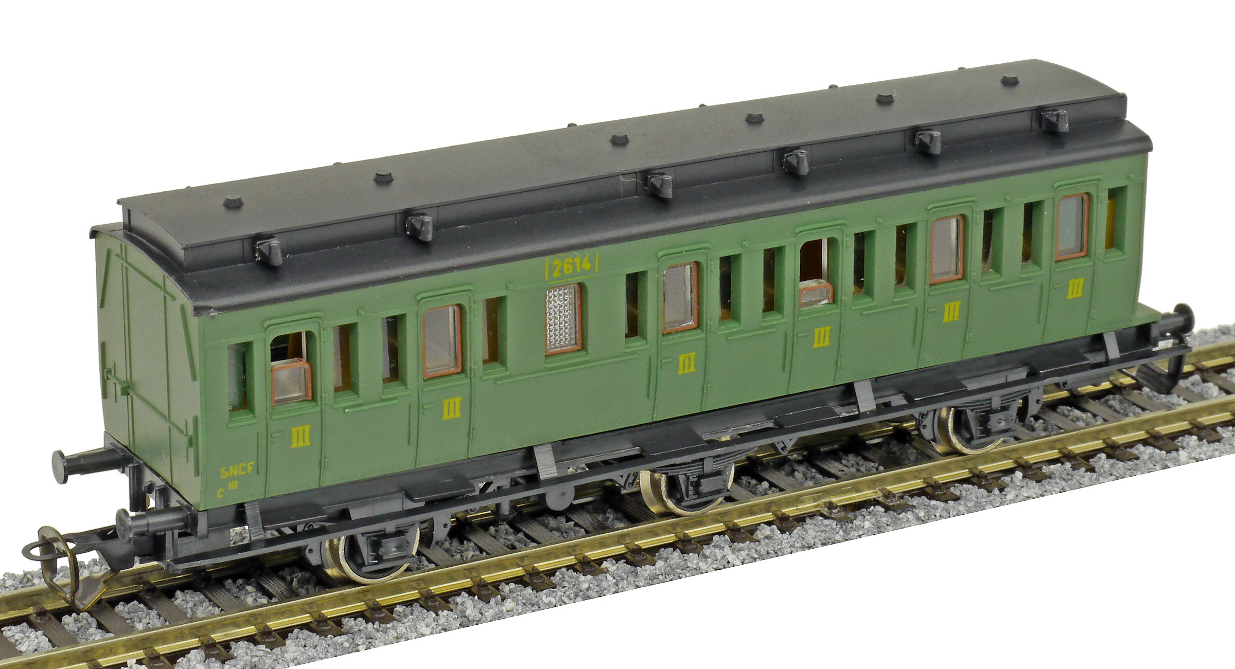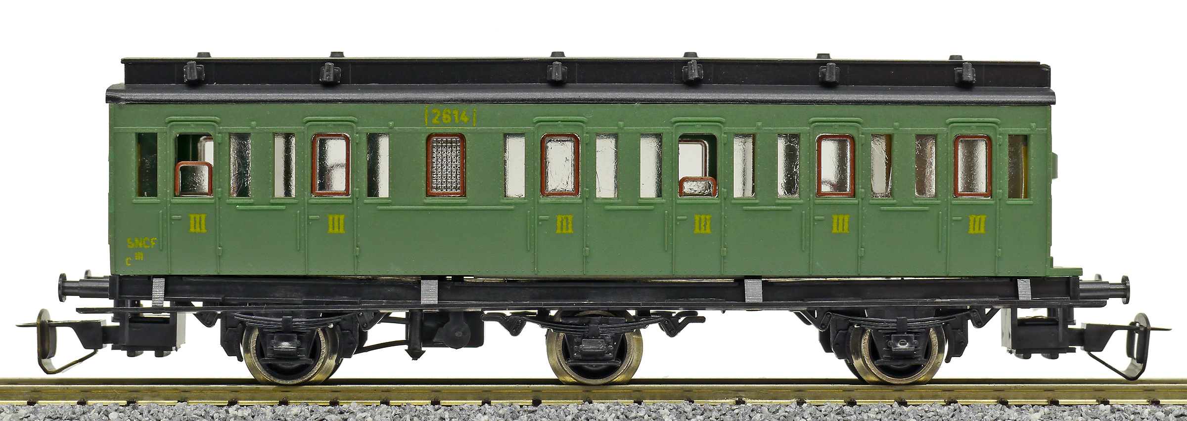 oddílový osobní vůz zelený s černou střechou 3. tř.