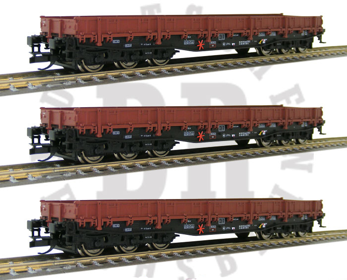 Popis   set tří červenohnědých nízkostěnných vozů Samms