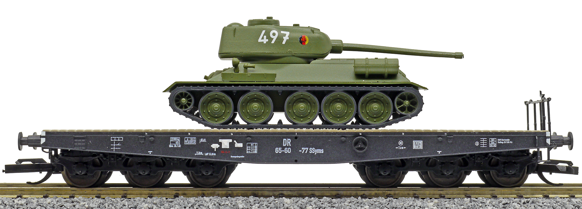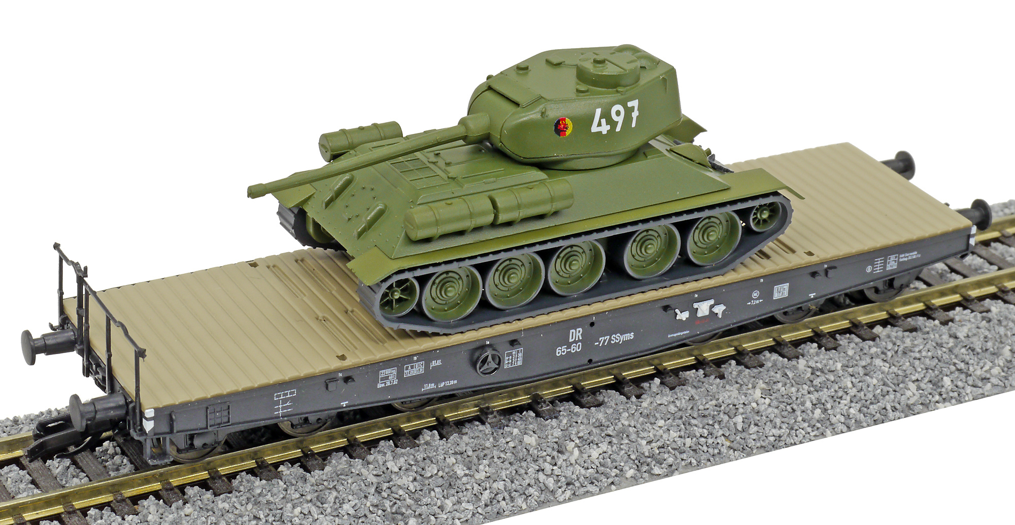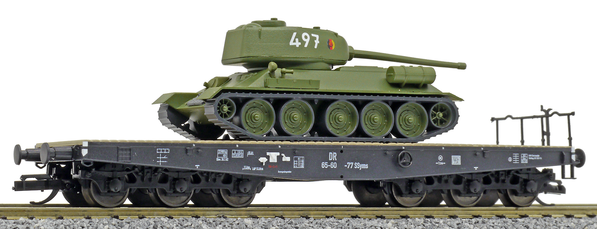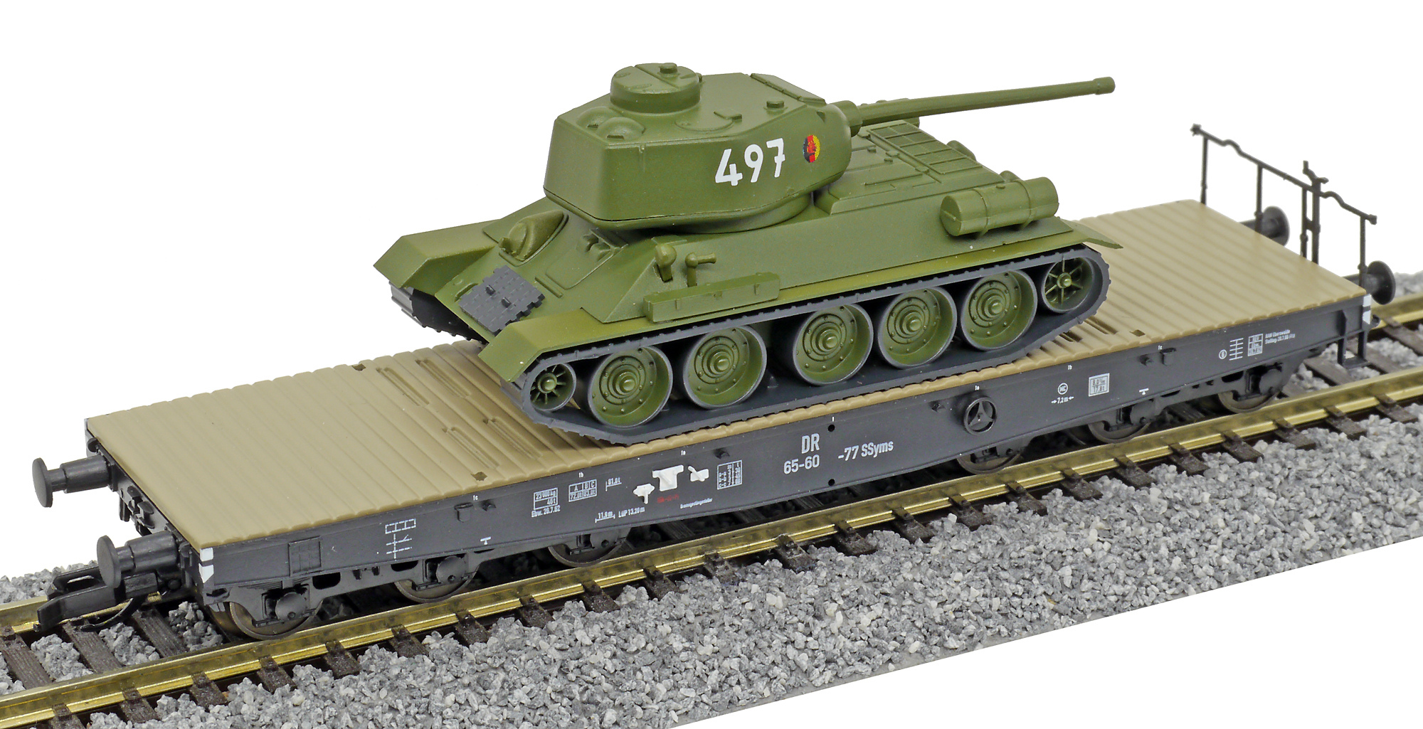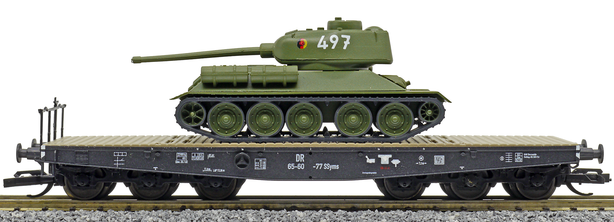 Popis   set krytého vozu a dvou plošinových vozů s tanky T34/85