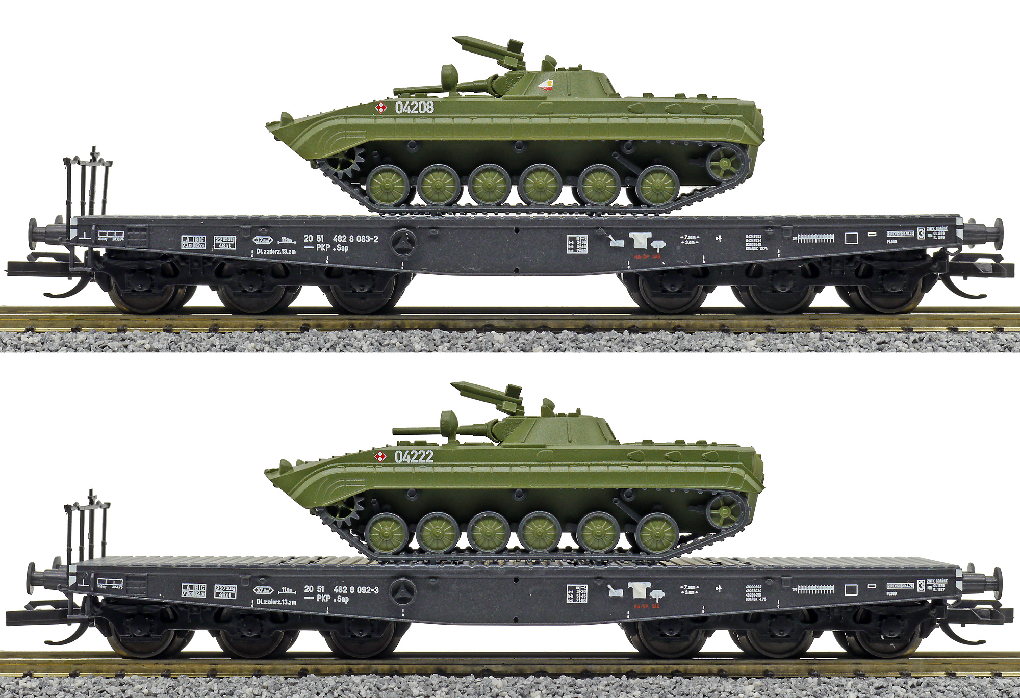 Popis   set dvou plošinových vozů s transportéry BMP-1