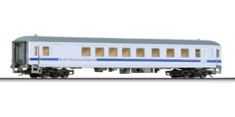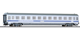 | rychlíkový vůz bílý s modrým pásem a šedou střechou 2. tř. „Berlin-Warszawa-Express“ |