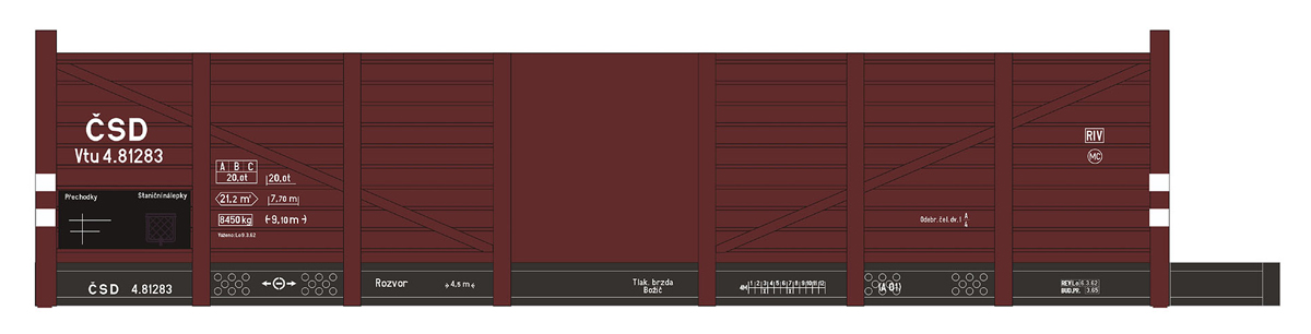 měřítko 1:120 - rozchod kolejí 12 mm kinematika krátkého spřáhla (KKK) podle normy NEM 358 2x76+81,5 mm - celková délka modelu přes nárazníky 3x2 - celkový počet náprav nebo rozložení náprav