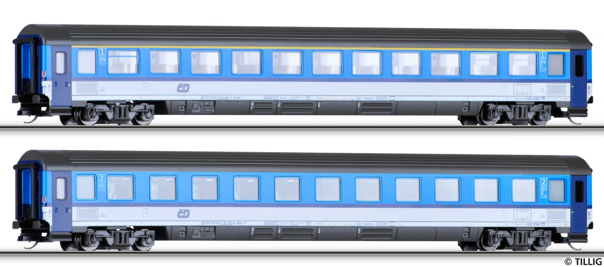 Popis   set dvou rychlíkových vozů v barevném schematu „Najbrt“