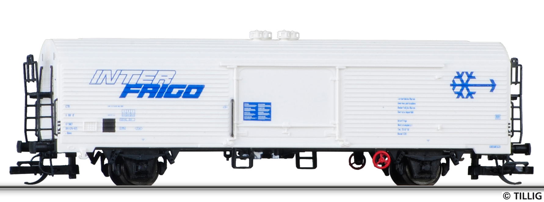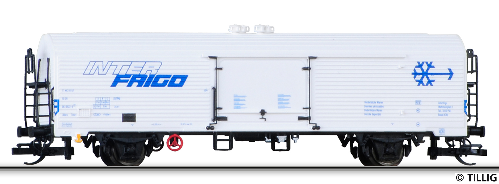 | tři nákladní chladící vozy setu „Kühlwagen Ibbes INTERFRIGO“ |