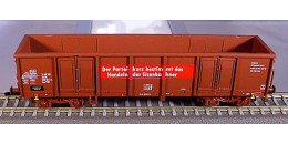 | vysokostěnný vůz červenohnědý s nápisem „Der Parteikurs bestimmt das Handeln der Eisenbahner“ |