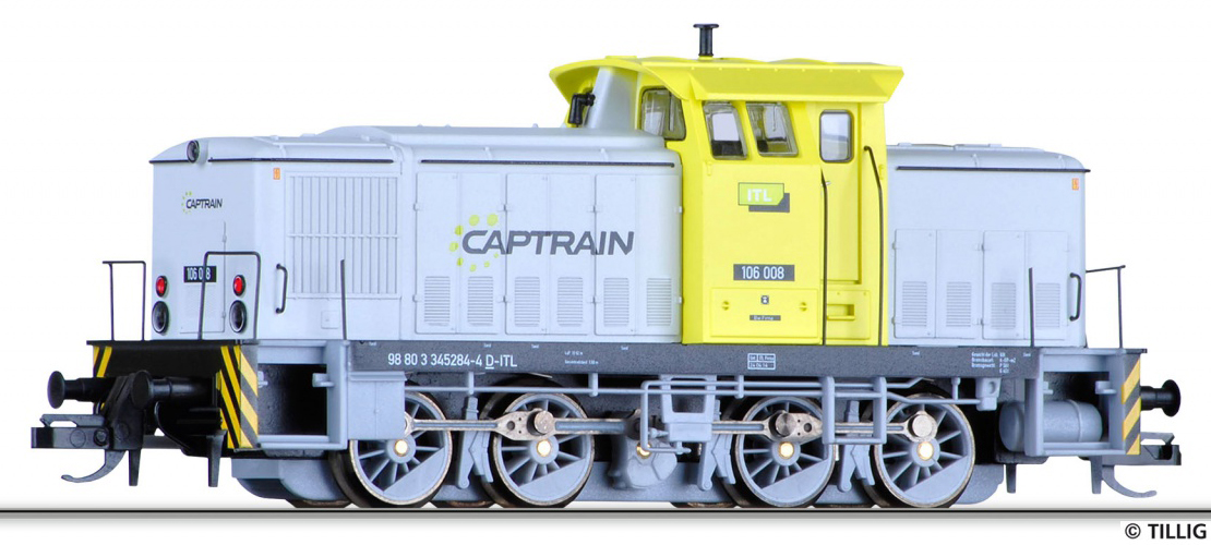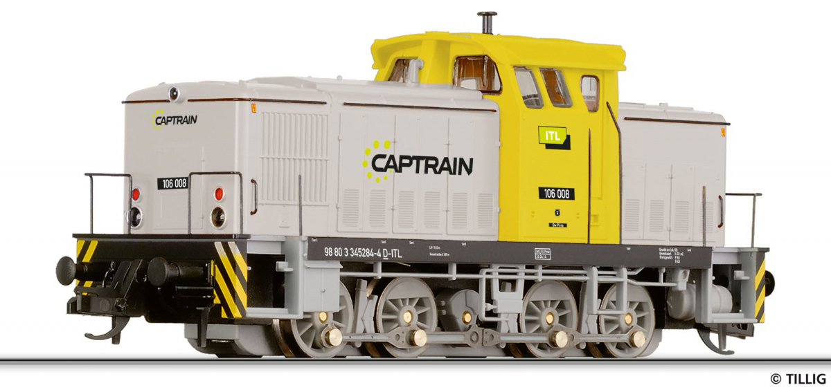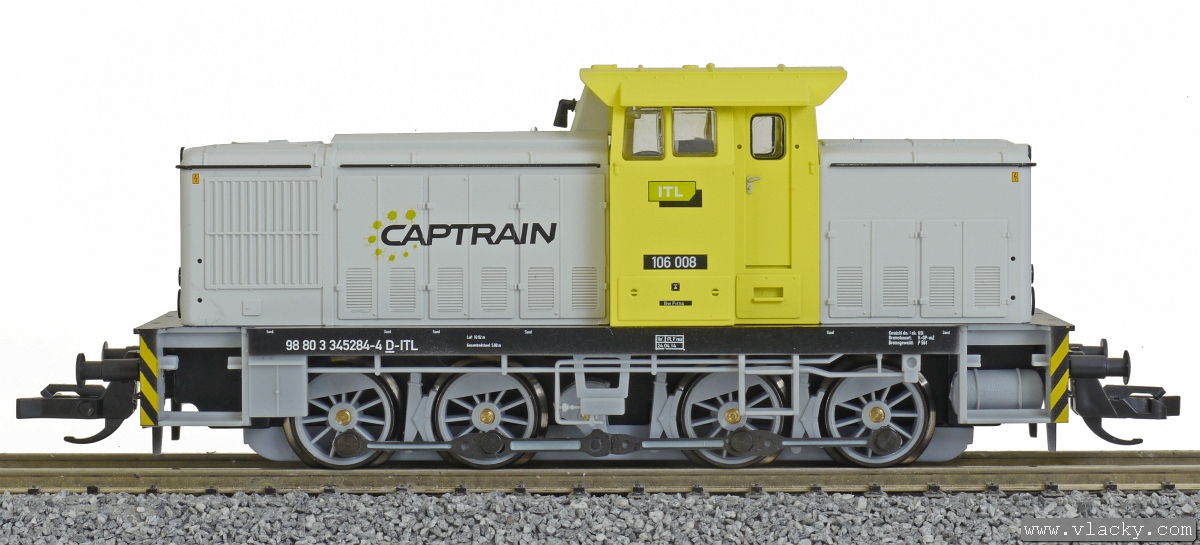 Popis   bílá-žlutá s černým rámem a pojezdem „CAPTRAIN“