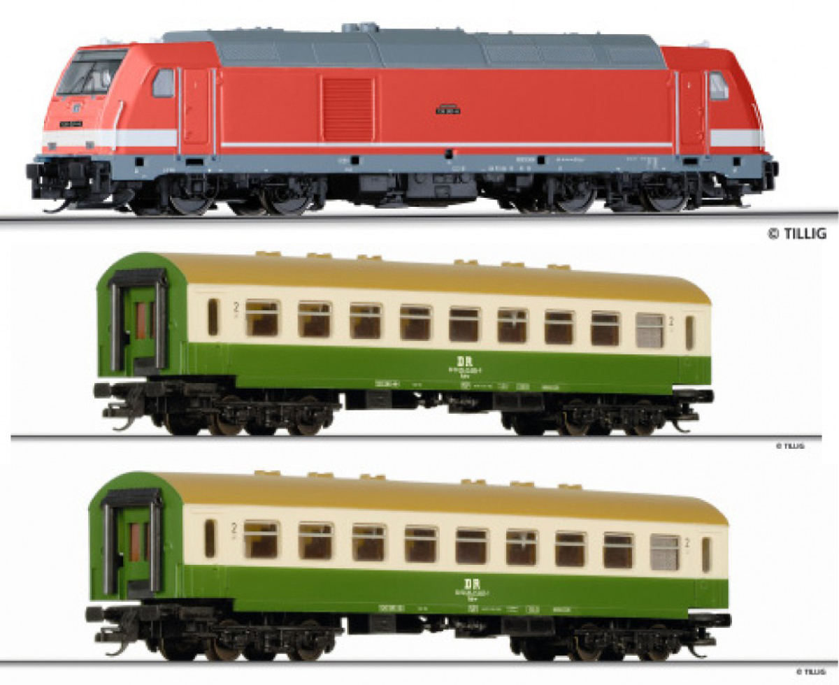 Popis   set dieselové lokomotivy BR 285 a dvou osobních rekonstruovaných vozů
