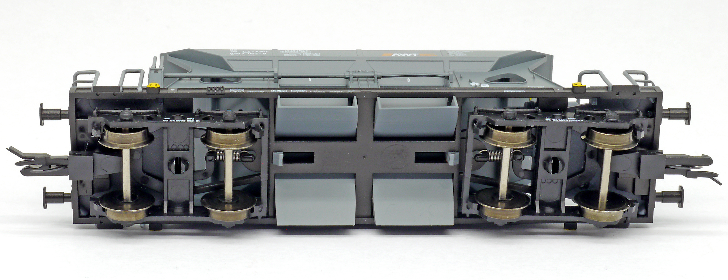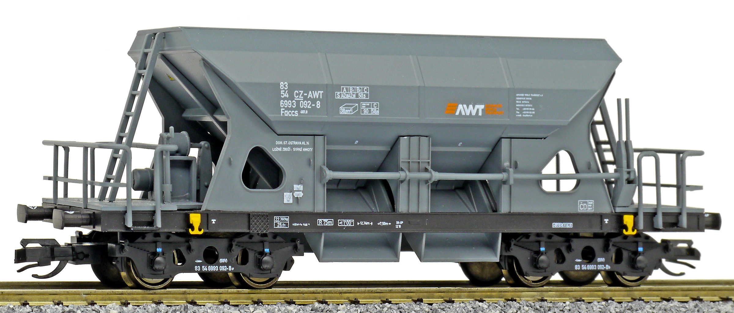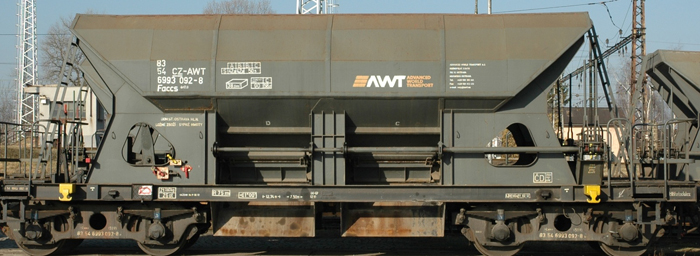 | nákladní samovýsypný vůz šedý s logem „AWT“ |