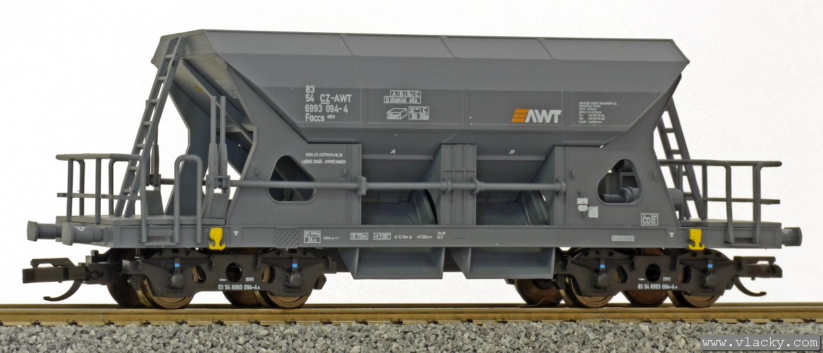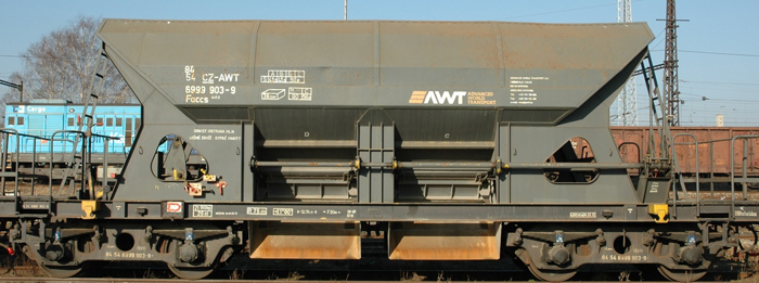 | nákladní samovýsypný vůz šedý s logem „AWT“ |
