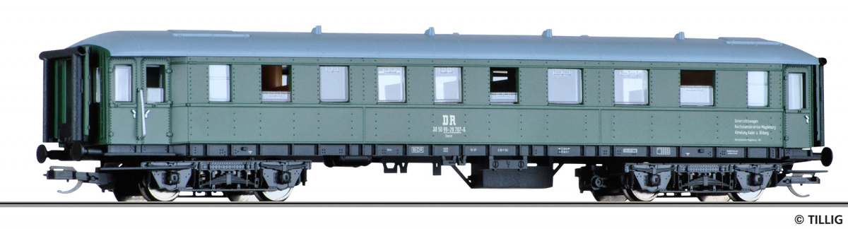 | zelený s šedou střechou výukový vůz ředitelství Magdeburg |